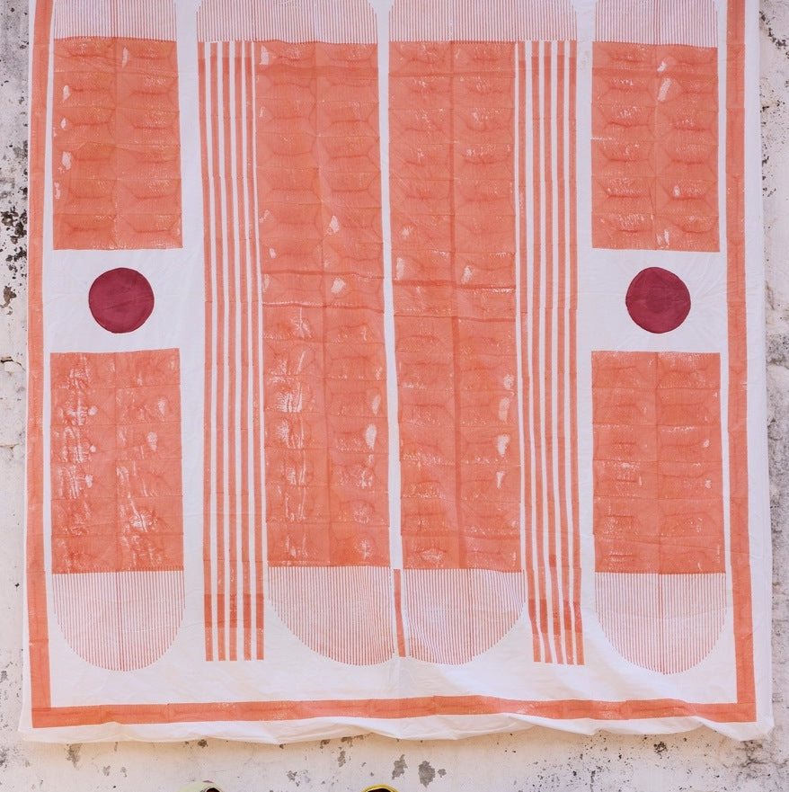 Each duvet cover is handmade, requiring attention from multiple artisans, including wood-block carvers, printers, and dye specialists. The design is hand-pressed onto each duvet using hand-carved wooden blocks dipped in dyes.
