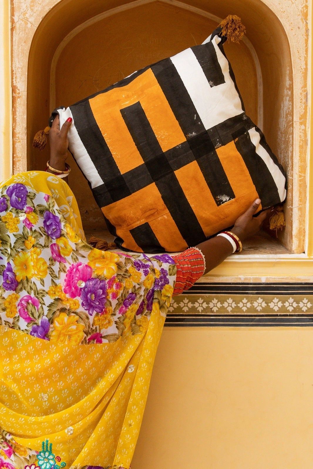 Each pillow sham is handmade, requiring attention from 4 artisans, including wood-block carvers, hand-printers, sewists, and dye specialists.