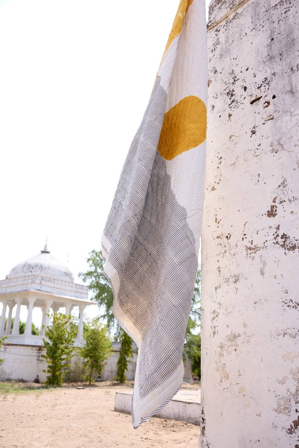 Each quilt is expertly handcrafted by our artisans using age-old techniques of hand-block printing and Kantha stitching. The vibrant sun and intricate moon phases are brought to life with hand-carved wooden blocks and eco-friendly dyes on 100% cotton, ensuring softness and safety for your baby’s delicate skin.