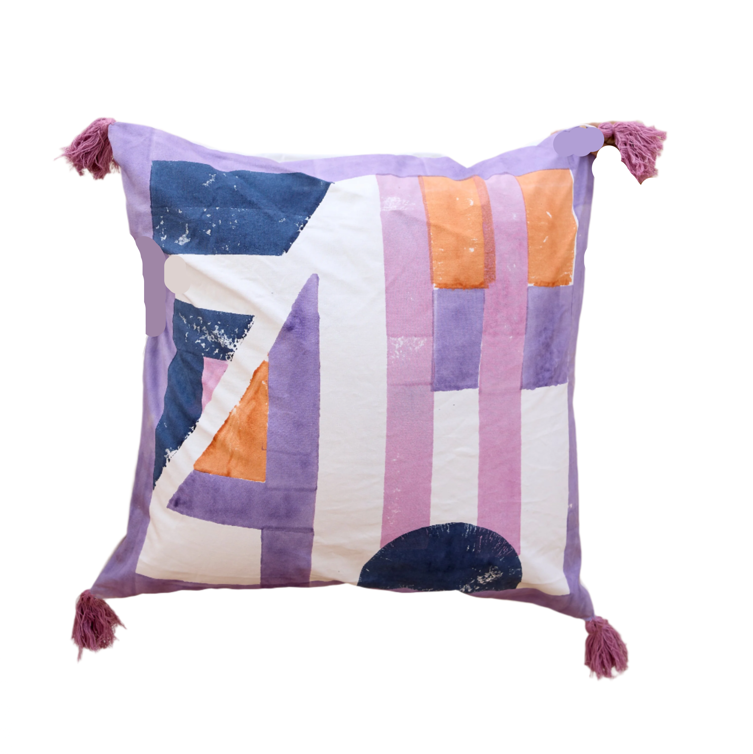 With its captivating reverse side, the Solstice Quilt invites warmth and vibrancy into your home. Adorned with an eye-catching sun and moon motif in warm orange tones, this side contrasts beautifully with the bold purple geometric design of the front. Each quilt is handcrafted, skillfully blending traditional techniques with contemporary aesthetics to create a versatile and striking addition to any space.