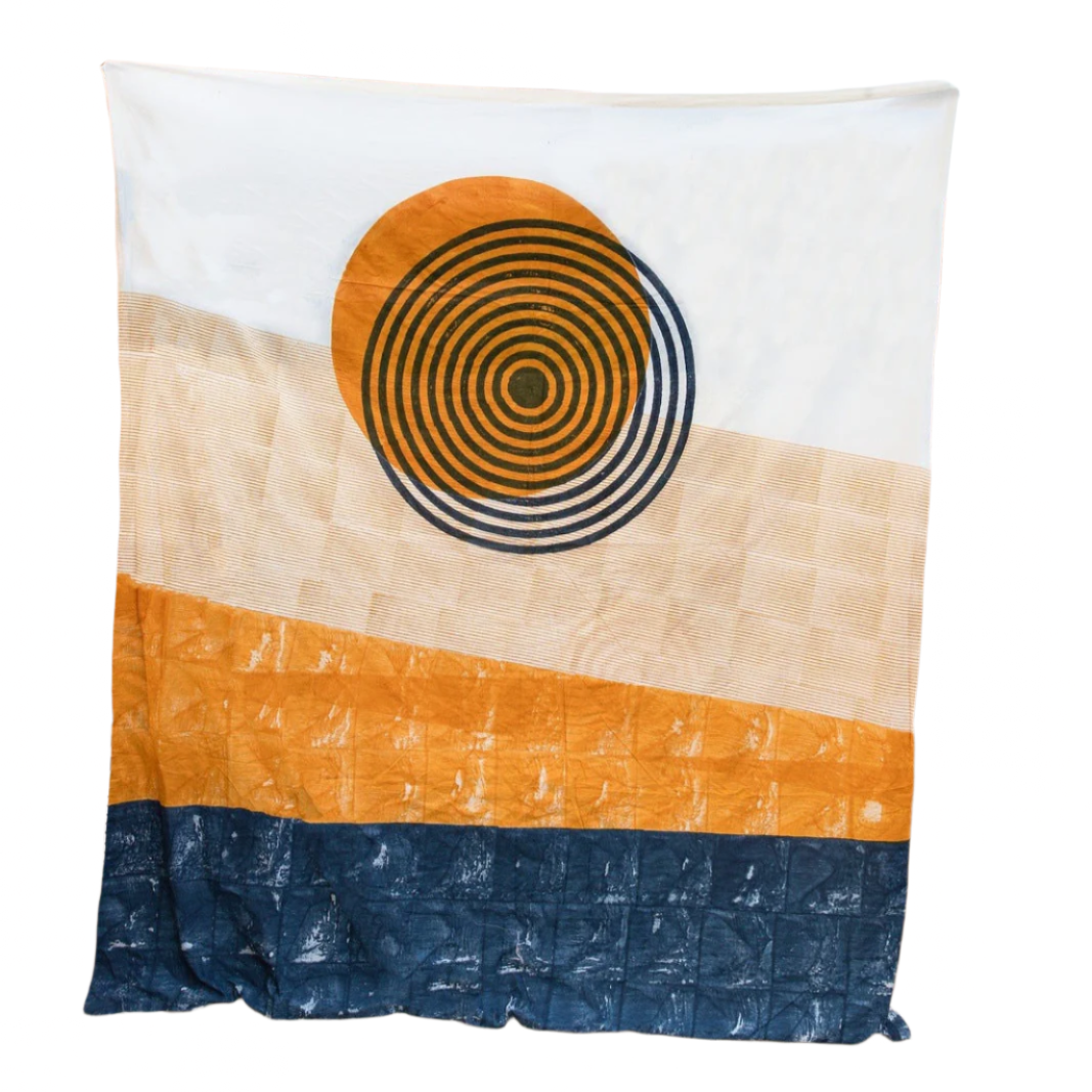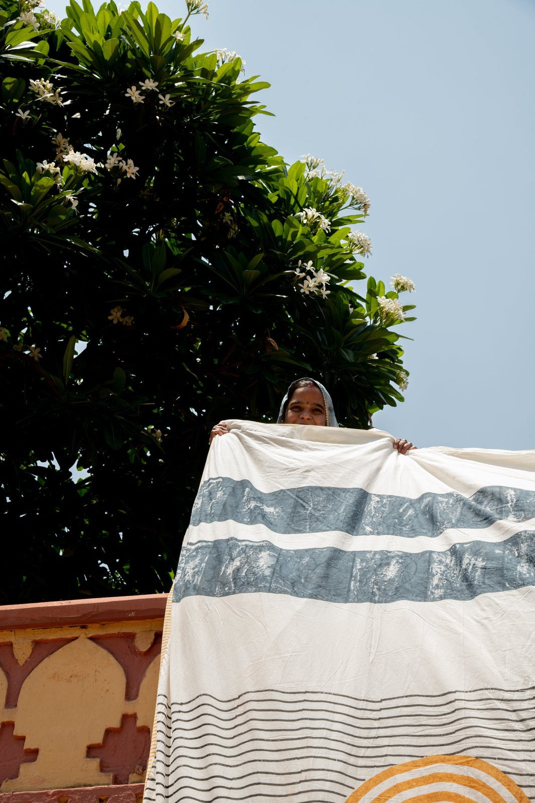 The design is hand-pressed onto each duvet using hand-carved wooden blocks dipped in dyes.