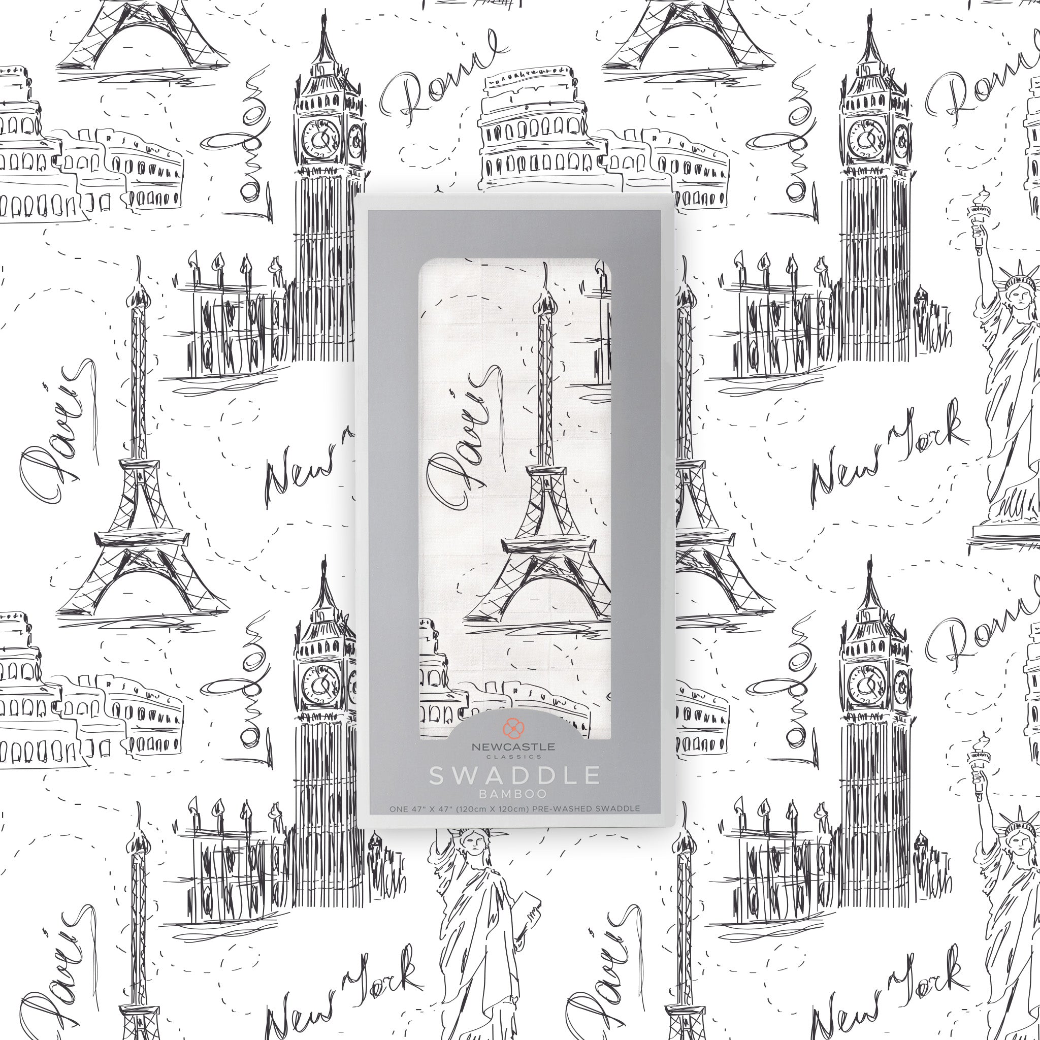 Baby Swaddle | Bamboo Muslin - London, Paris, New York