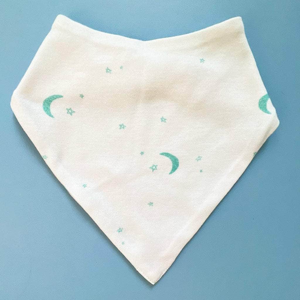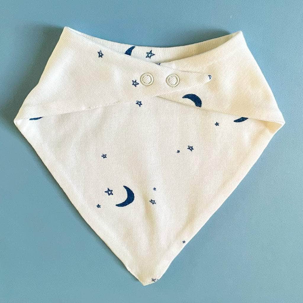 Baby will twinkle with our super soft Moon and Stars bib. Cut from incredibly soft organic cotton, our baby bib is printed on both sides for extended use and even has a double set of snaps to grow with baby. Love you to the moon and back!