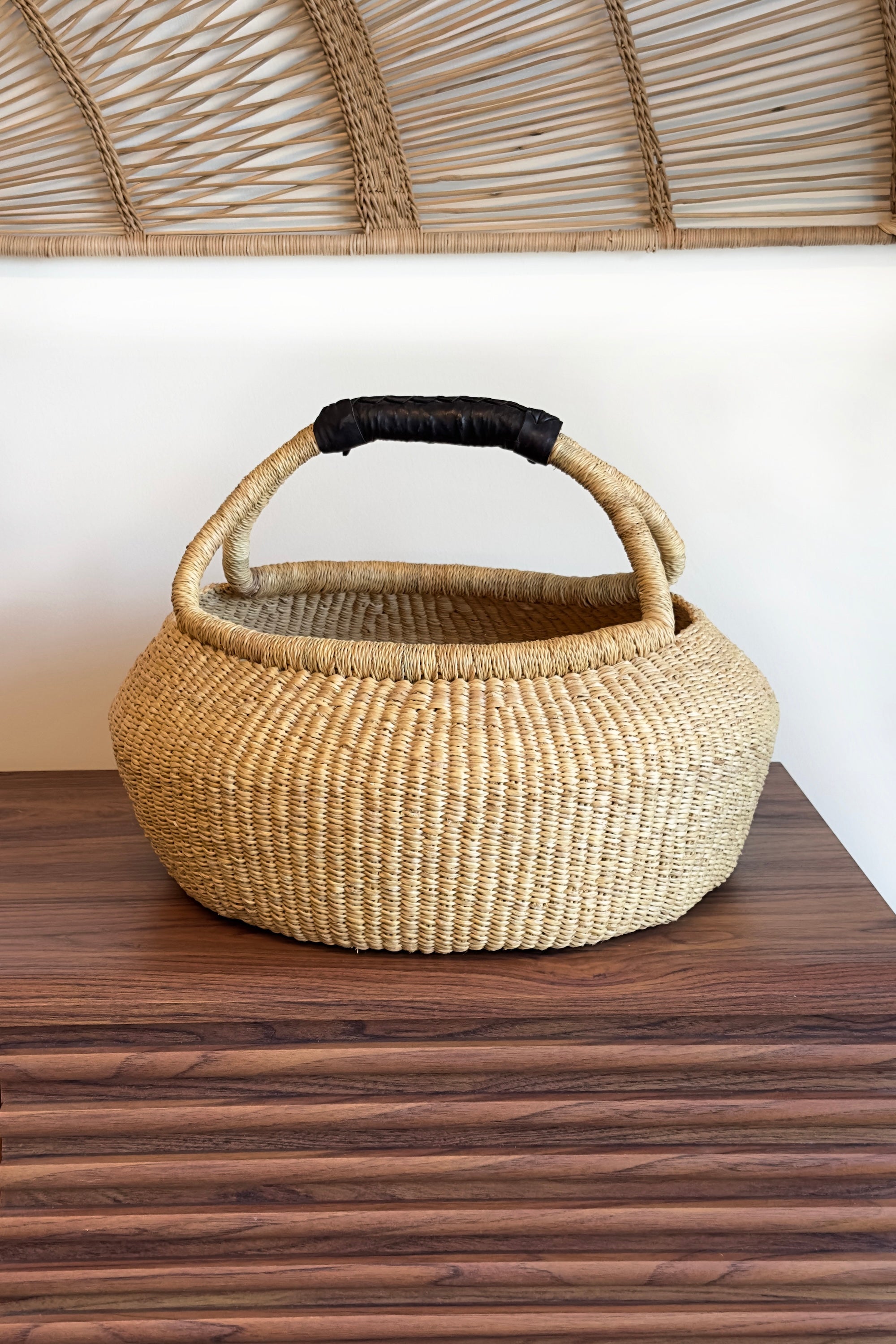 Imagine a touch of natural warmth and effortless organization entering your home with this beautiful Handwoven Double Weave Kettle Basket. Crafted with a unique double weave technique, this basket isn't just a place to store things; it's a charming accent piece that brings a cozy, artisanal feel to any room. Picture it filled with soft blankets on a chilly evening, ready for family movie night, or holding freshly picked produce from your garden, adding a rustic touch to your kitchen counter. The sturdy, comfortable handles, wrapped in a smooth black material, make it easy to carry from room to room, whether you're gathering toys after playtime or transporting laundry. This basket is designed to simplify your busy life, offering a stylish solution to clutter and adding a touch of handcrafted beauty that makes your home feel even more welcoming. PRODUCT FEATURES: - Handwoven double weave construction for added strength and visual appeal. - Comfortable black wrapped handles for easy carrying. - Versatile design for storage and decorative use. - Unique, artisanal piece that adds natural charm to your home.
