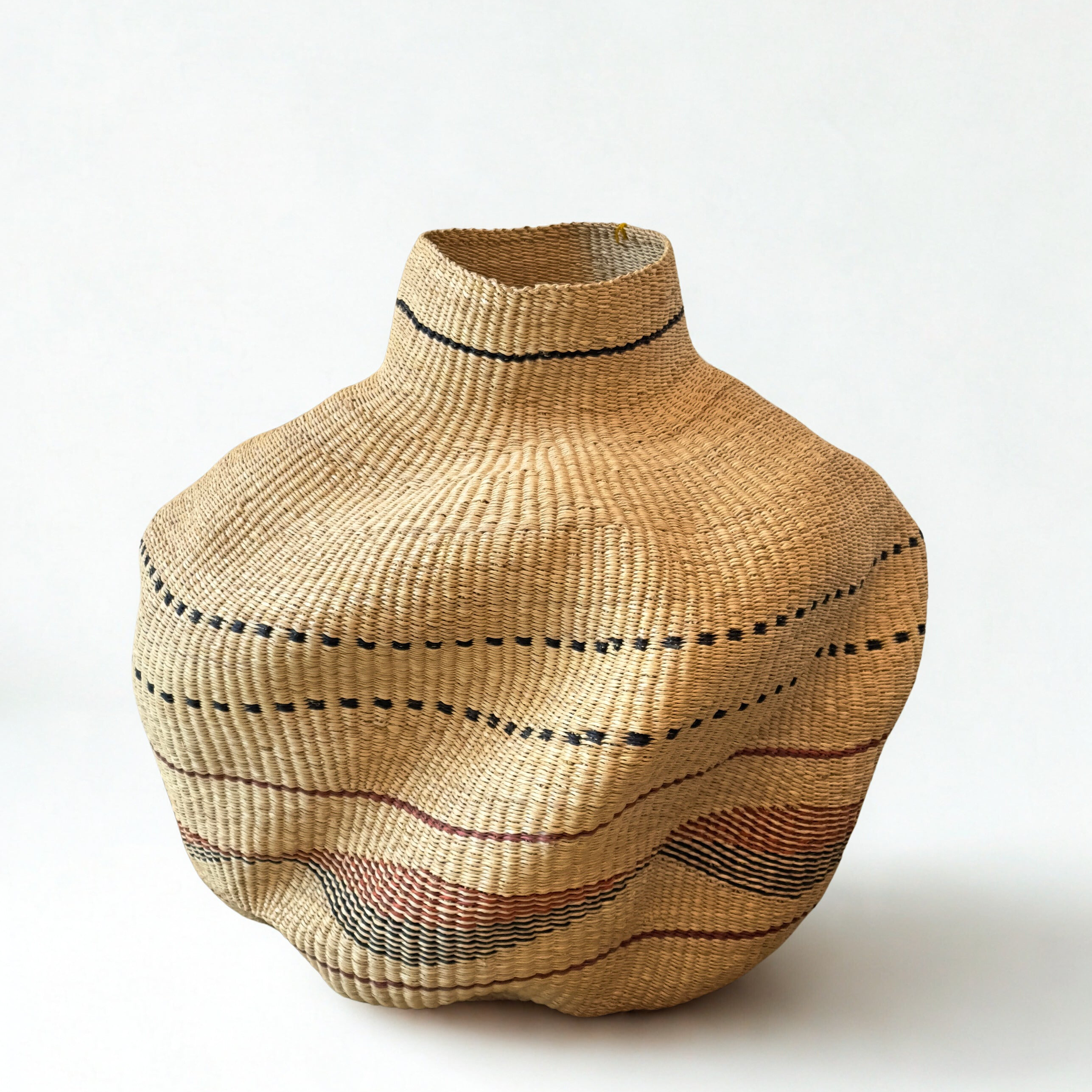 Transform your living space into a haven of organized tranquility with the Handwoven Wave Basket. Imagine the satisfying feel of natural fibers as you effortlessly corral stray toys, blankets, or even laundry, instantly decluttering your family's favorite rooms. This isn't just any basket; it's a statement piece, handwoven with intricate detail, featuring a unique wave-like silhouette and subtle black and red stripe accents that add a touch of artisanal charm to any decor.