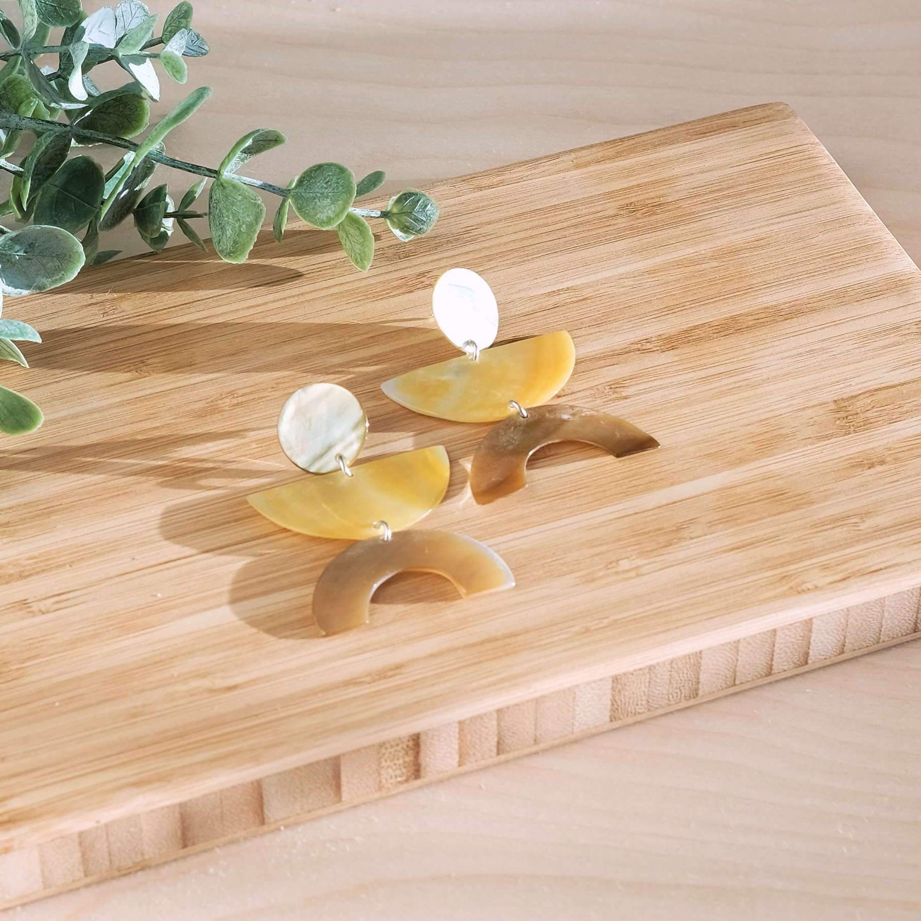 A stunning pair of geometric earrings to pair with every outfit. Handcarved, cut, and polished by master artisans, this versatile mother-of-pearl piece delivers modern elegance in an iridescent ombre hue. Due to the material and production process, slight variations in color, pattern, or texture may naturally occur. We invite you to embrace its uniqueness and imperfections. Each purchase empowers female artisan communities in the Philippines, who have access to fair trade and dignified employment through the production process. Always locally-sourced materials, ethically-made, and conflict-free.