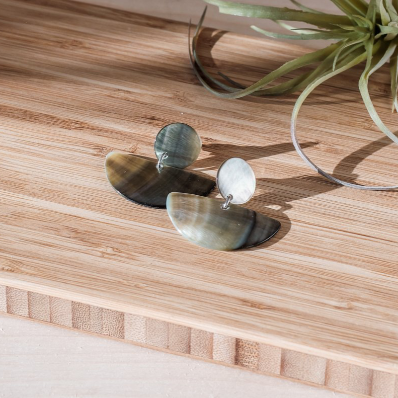 Geometric Earrings, Iridescent Grey - Shell Jewelry