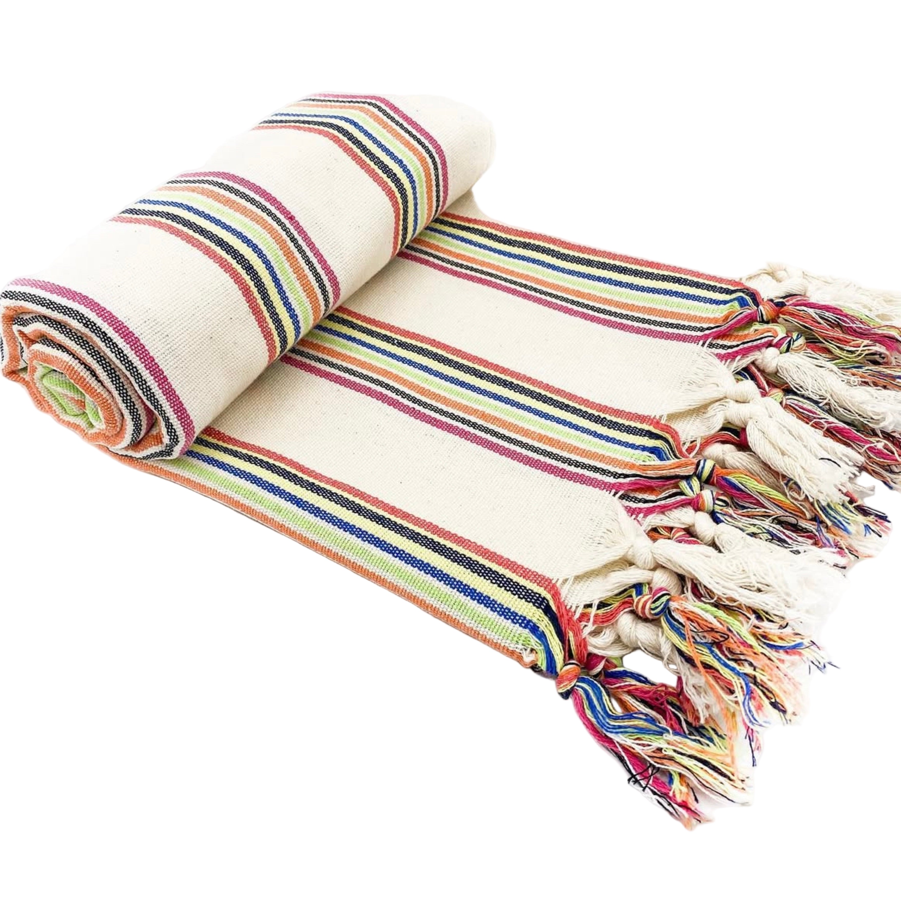 Our throw blanket has both Mexican & Turkish soul. Use as a farmhouse decor throw blanket, tablecloth, picnic blanket, beach towel or bedspread.