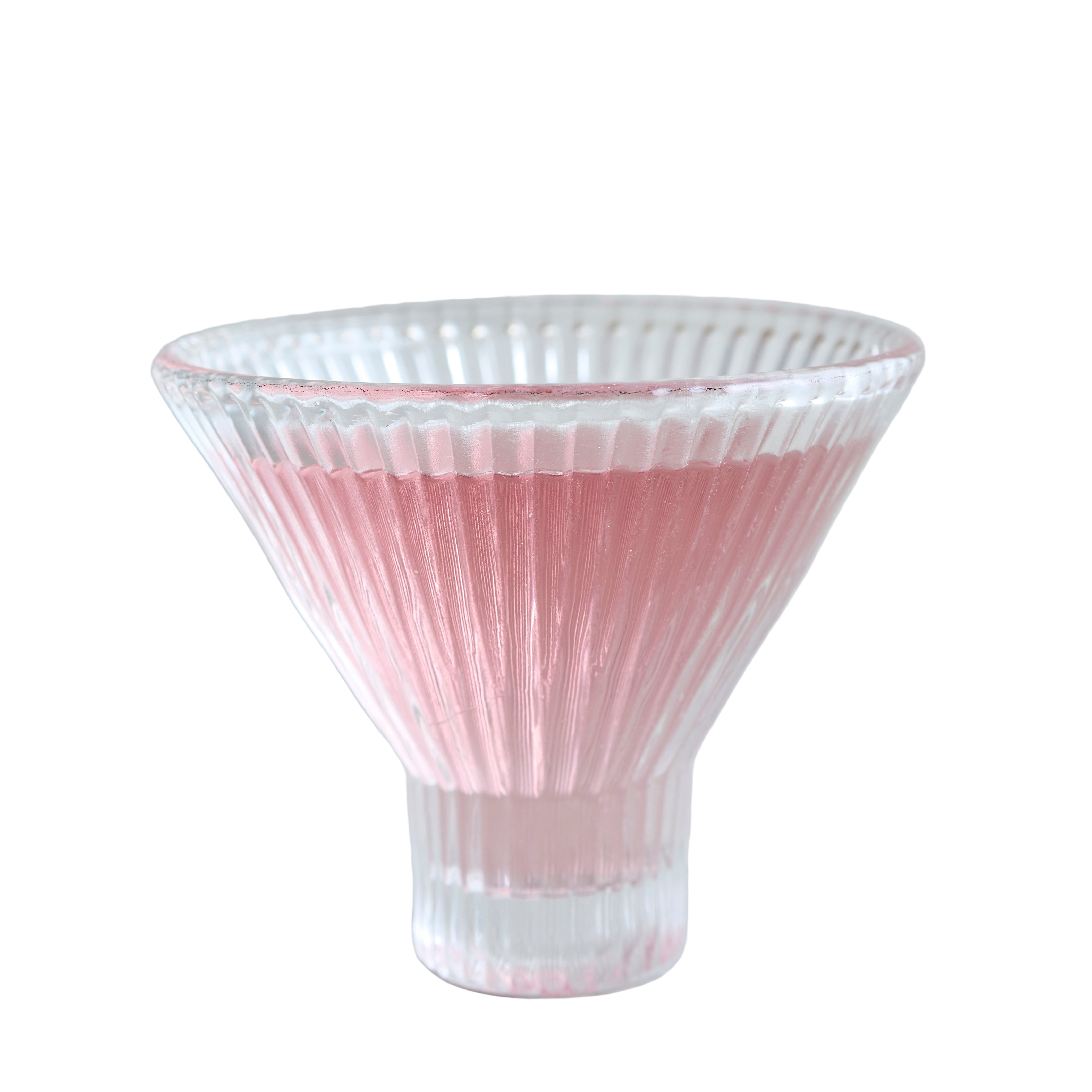 Not your typical martini glass, our pressed glass martini features a flared bowl atop a stout sham for a sophisticated look. Molded vertical ribs add allure and grip.