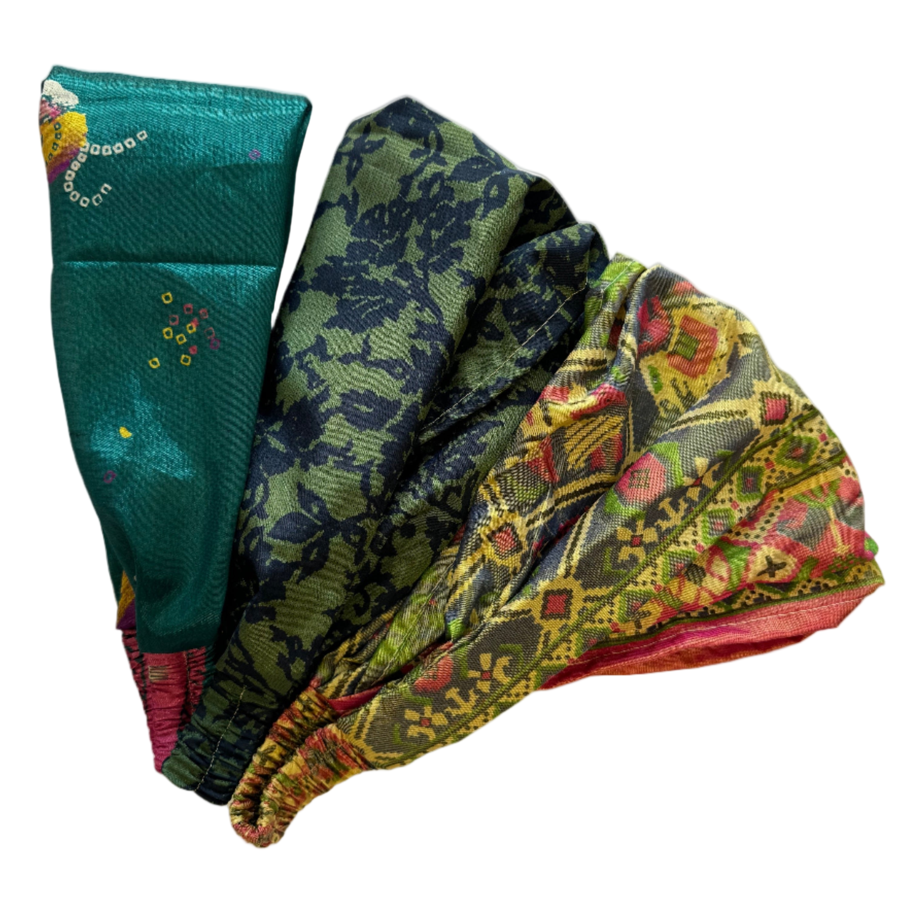 Made from 100% Recycled Sari Silk & Elastic back.