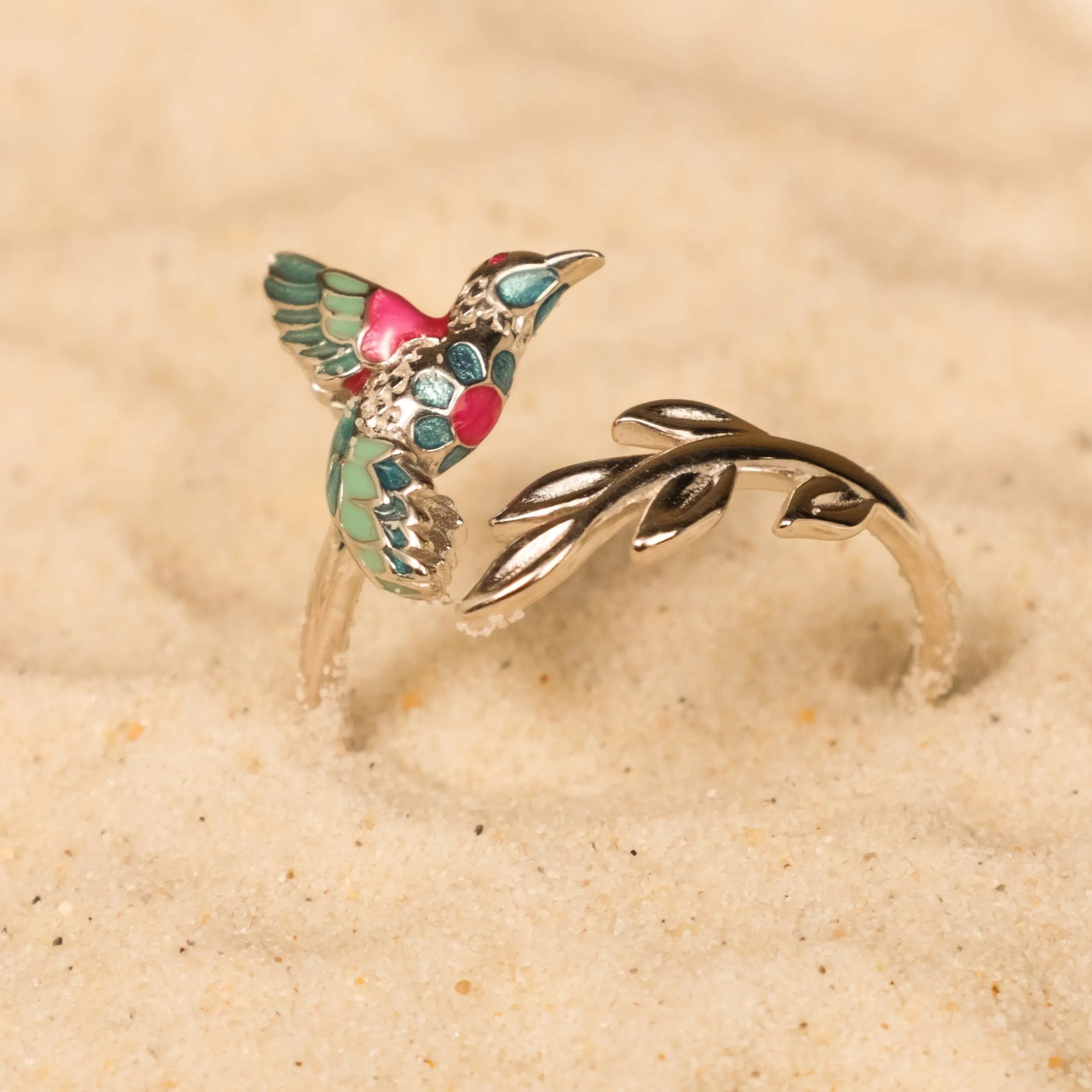 This ring is more than just a piece of jewelry; It is a symbol of beauty, grace and freedom. It is a unique and special gift that is sure to be appreciated for its exquisite design and symbolic meaning. Whether in its silver version or with the added touch of gold, this hand-painted hummingbird ring is a statement of style and elegance that will captivate whoever receives it.