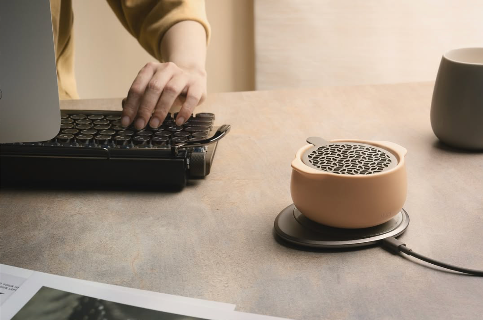 A fine ceramic self-heating diffuser that brings the art of aromatherapy into your home. Elegantly designed with simplicity at its core, the Jun invites you to create a personalized aromatic sanctuary. Not only this, its charging pad can also wirelessly charge your cell phone.