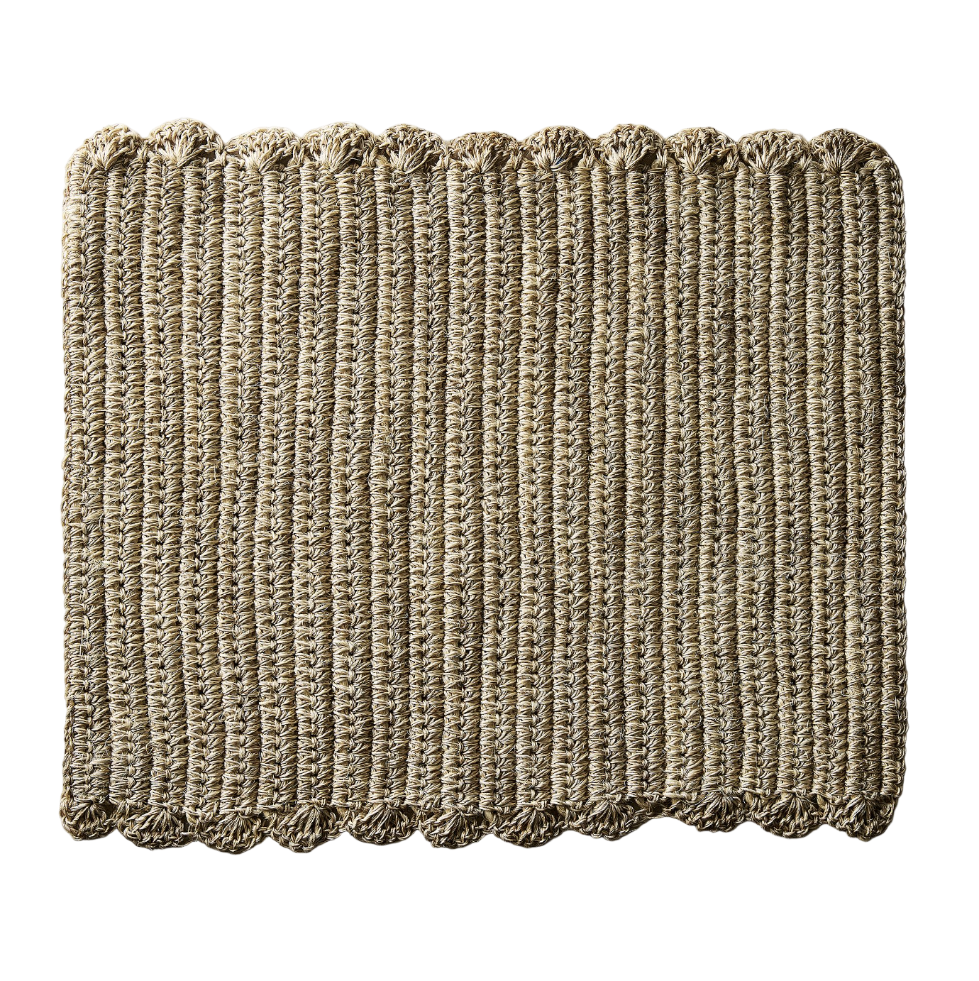 Rectangular hand woven placemat handmade by artisans in Colombia using fique, a sustainable fiber from the Andean region.
