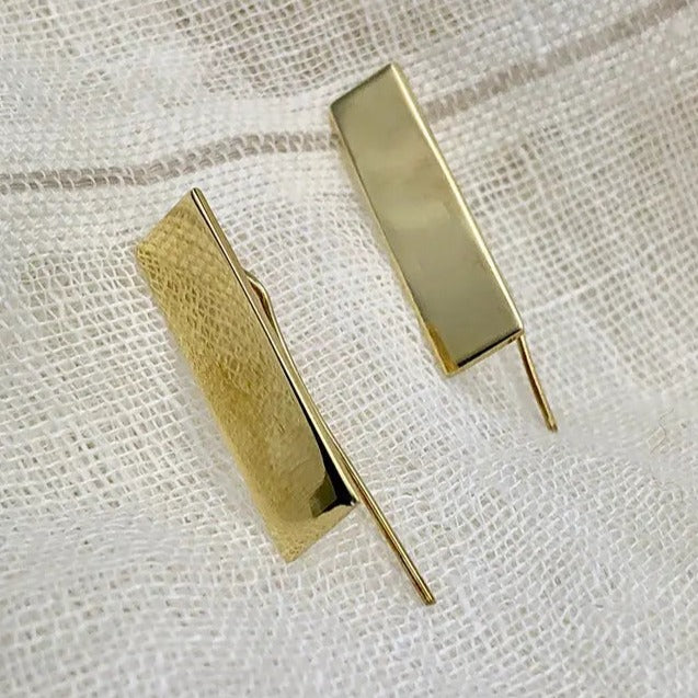 Hechos a mano con amor en Camboya. Los pendientes de barra Bombshell están muy pulidos y fabricados a mano por un grupo de artesanos en Camboya a partir de conchas de latón recicladas.