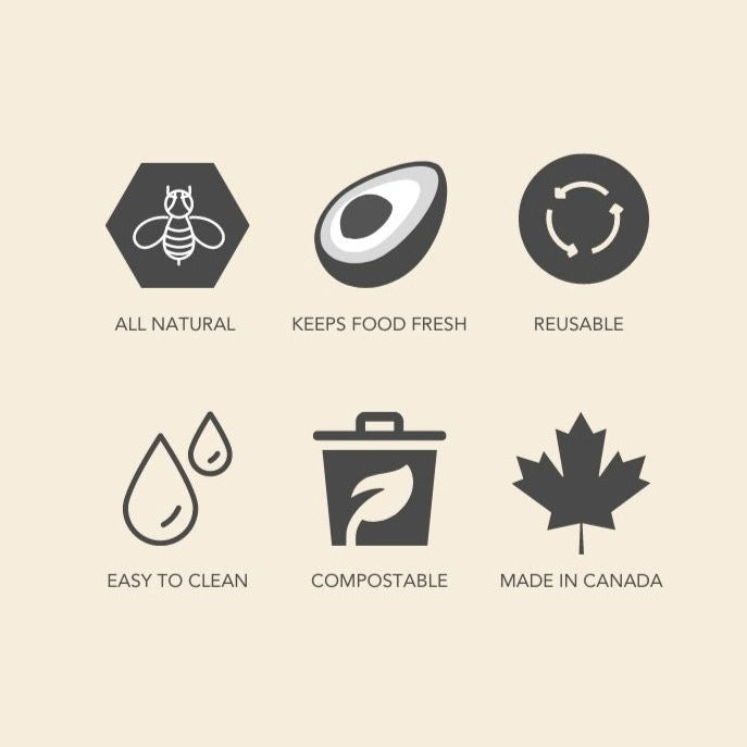 100 % algodón | Cera de abejas canadiense | Resina de colofonia | Aceite de jojoba