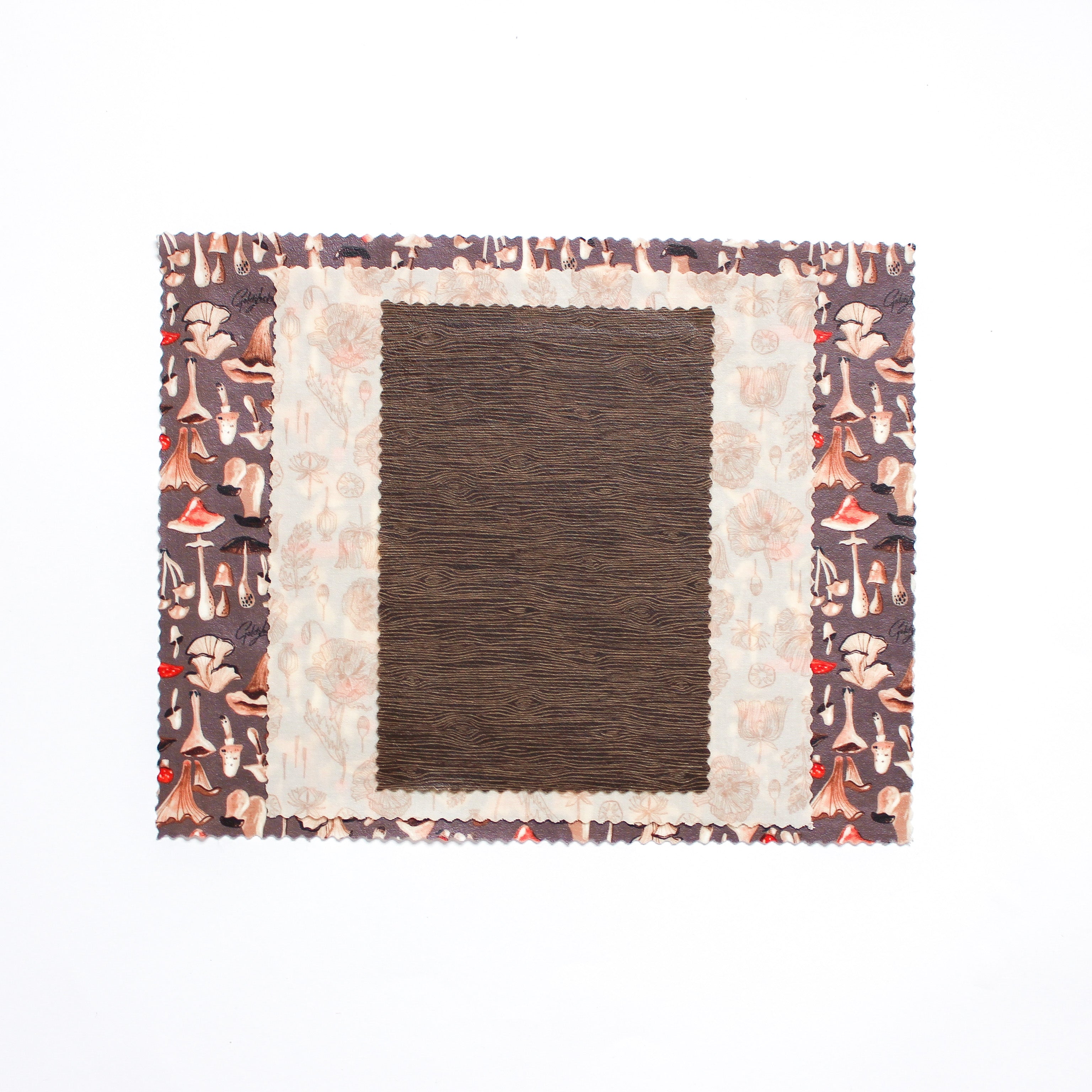 Este fantástico estampado de hongos es el sueño de cualquier recolector. El tamaño grande está salpicado de extravagantes setas venenosas, mientras que el tamaño mediano está adornado con delicadas flores y el tamaño pequeño emula la textura natural de la corteza.
