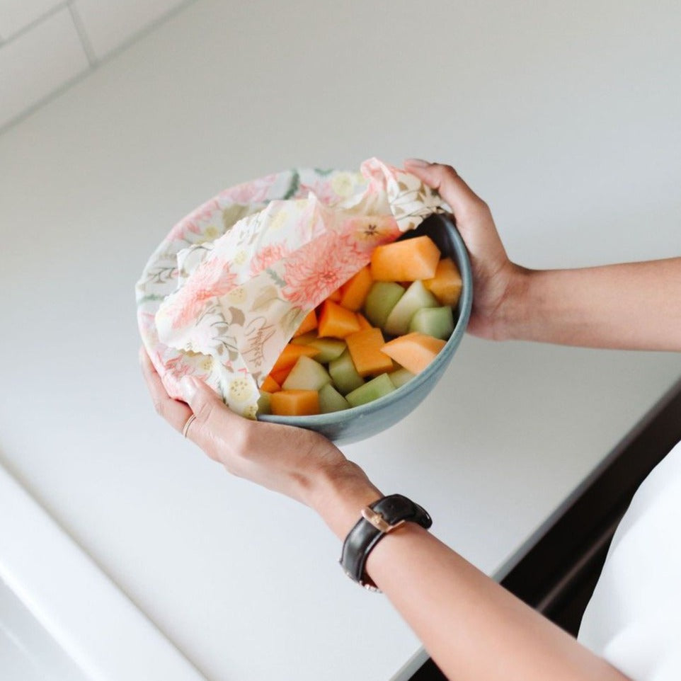 Una alternativa totalmente natural, reutilizable y ecológica al film plástico en la cocina. Lavar con agua fría y jabón. No calentar.
