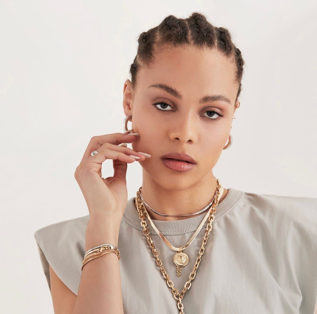 El collar con colgante Melissa es una combinación de nuestro collar con cadena Viper de 5 mm y el colgante Leni. Este collar está disponible en baño de oro de 14 quilates.