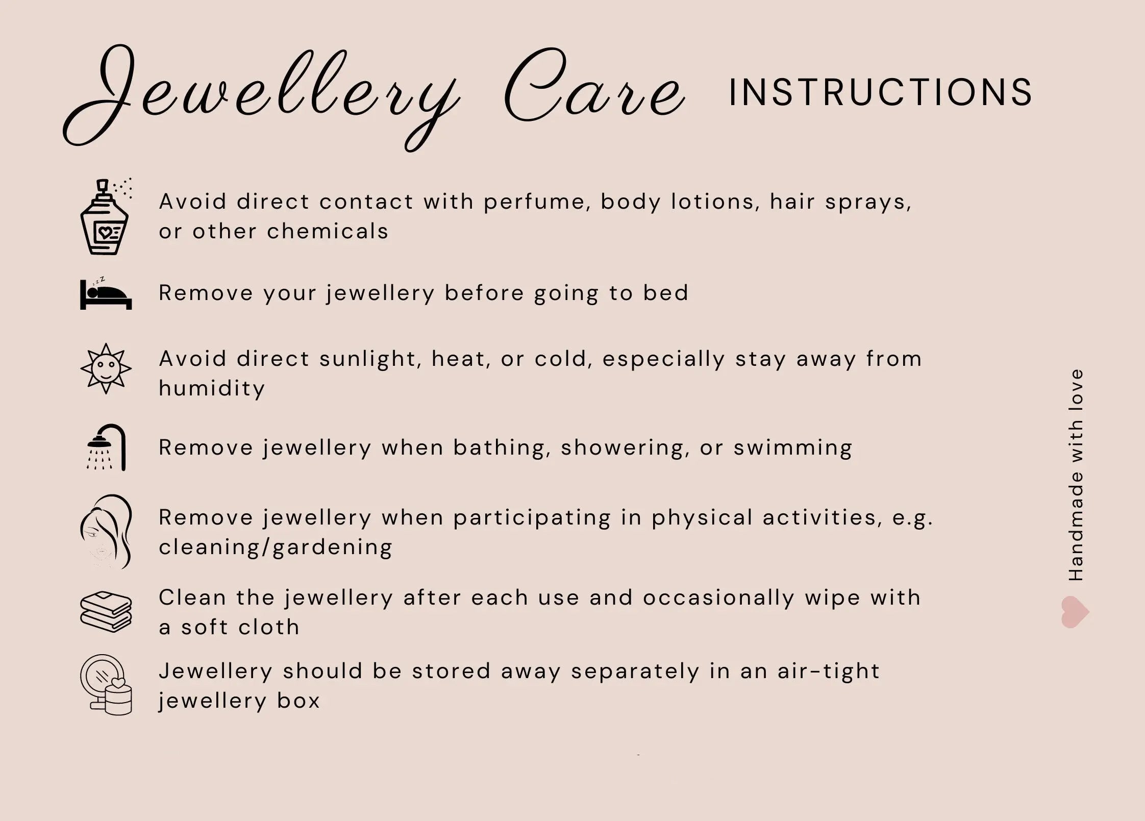 Each of our beautiful pieces is made with love and care from high-quality materials. We love creating beautiful jewelry and we hope our designs bring you as much joy as we do making them.