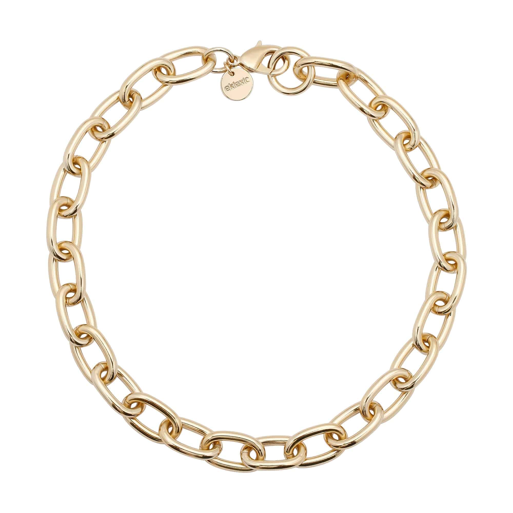 El collar Alana es una cadena gruesa de eslabones redondeados, sujeta con un cierre de langosta.