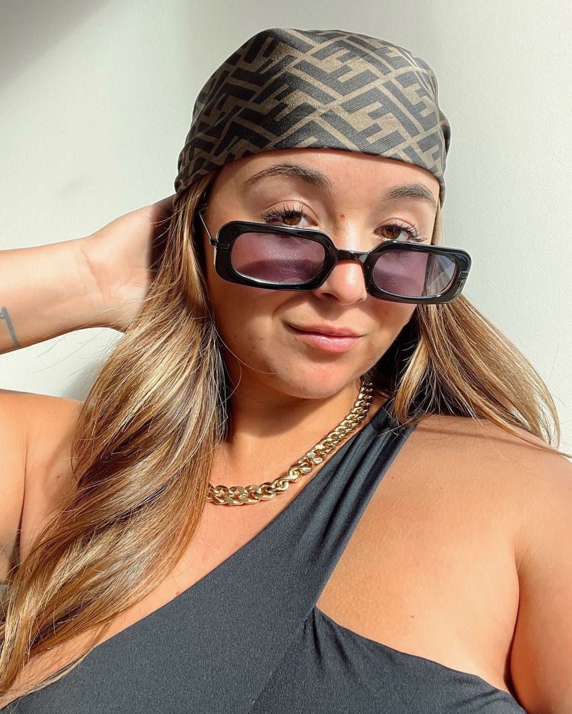 El collar Taraji está elaborado con una gruesa cadena de eslabones cubanos de latón reciclado de forma cuadrada y se cierra con un cierre de mosquetón. Acabados disponibles: chapado en oro de 14 k o chapado en plata rodiada.