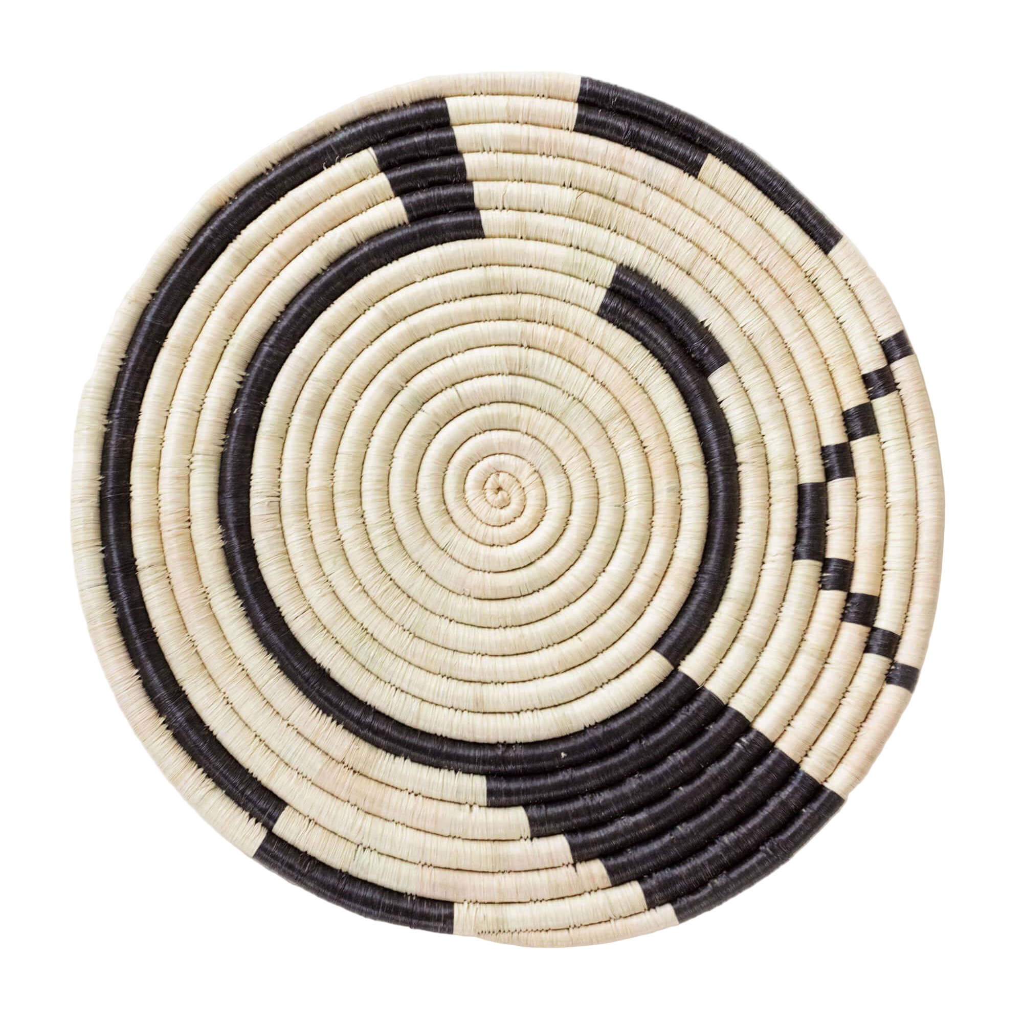 The perfect match for our natural and black coaster sets, this placemat makes a statement as a centerpiece or as a unique table setting. Perfect for indoor and outdoor dining. Sold Individually. Our placemats are handcrafted in Rwanda with a time-honored weaving technique passed down from generations of artisans.