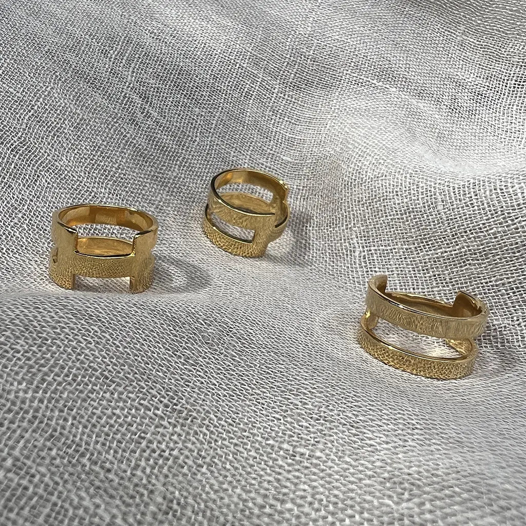Este anillo está elaborado a mano por hábiles artesanos a partir de casquillos de bala y de bombas reciclados. Cada pieza está delicadamente bañada en oro, lo que le aporta un toque elegante y le otorga un brillo duradero. Experimente la combinación perfecta de sostenibilidad, artesanía y elegancia con este anillo.