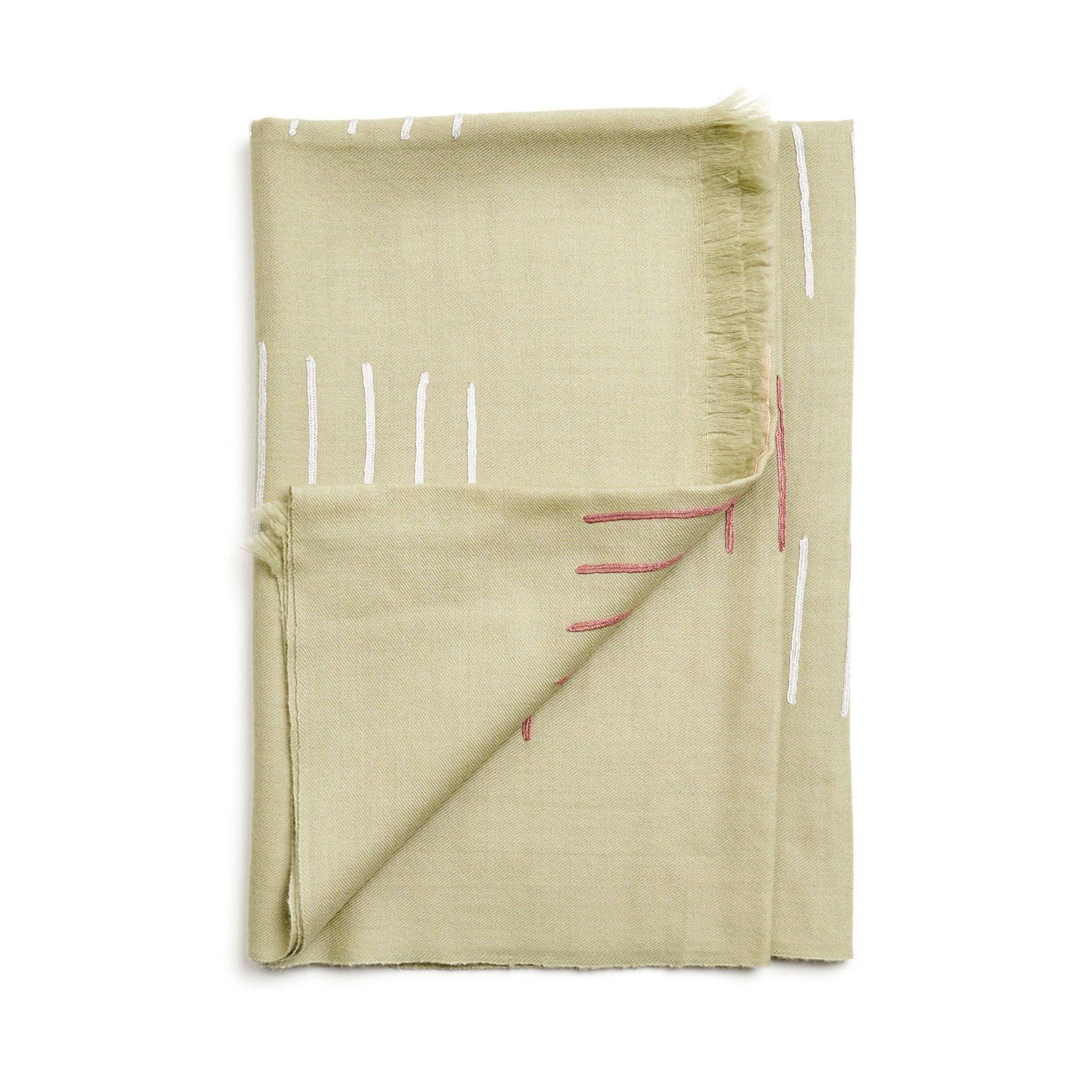 Sea Salt Pastel Green Hand Woven Hand Embroidered Silk Merino Classic Scarf