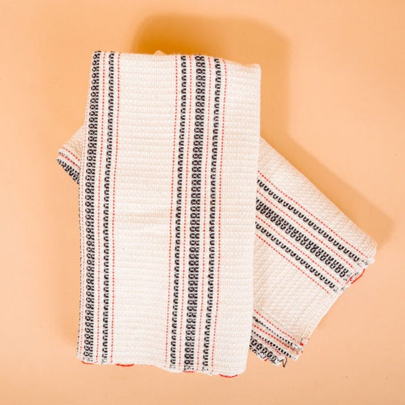 Paño de cocina a rayas Mistari de 40 x 60 cm - 100 % algodón orgánico | Tejido a mano de Kenia