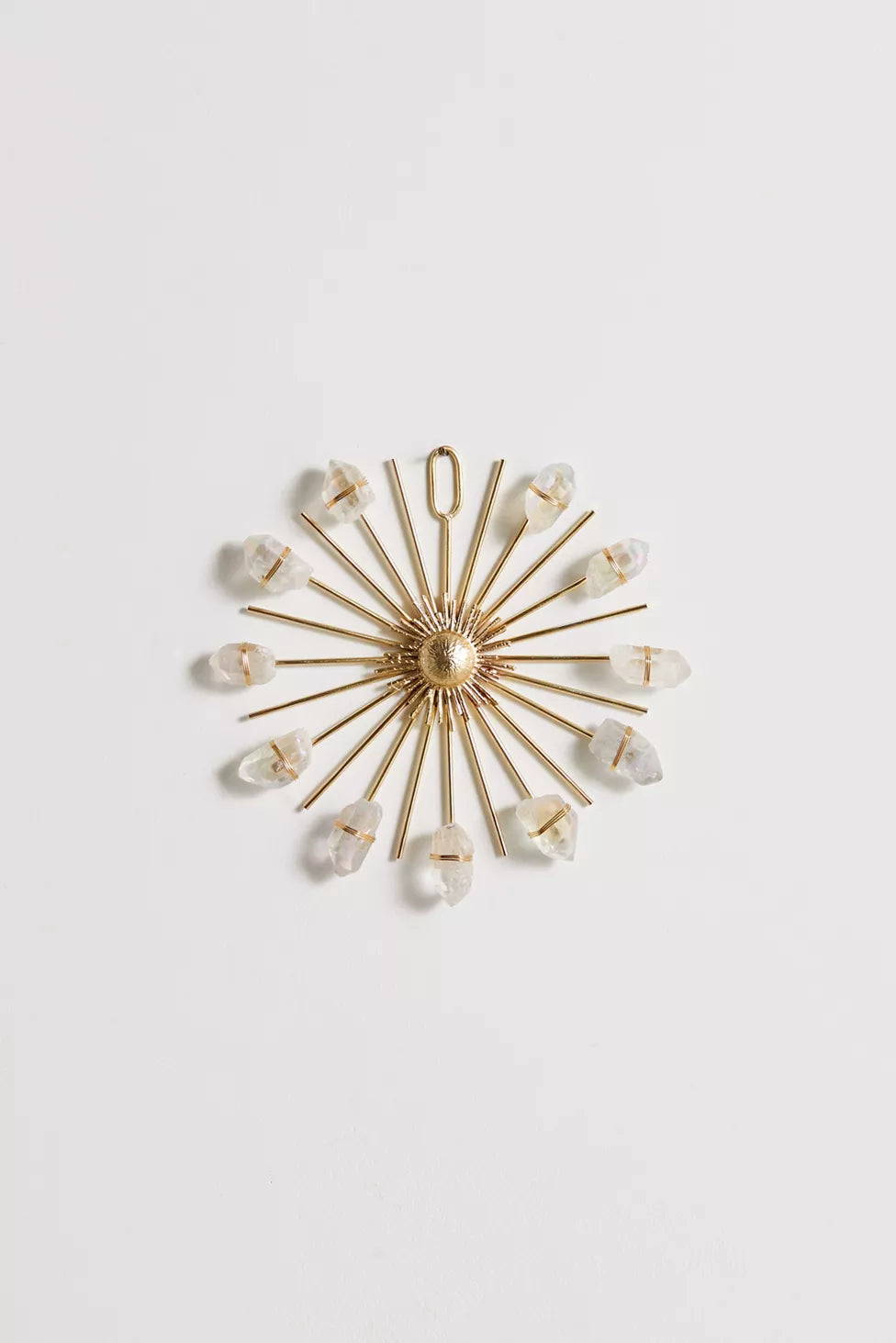 Rejilla de cristal curativo Sunburst con punta de cuarzo Aura