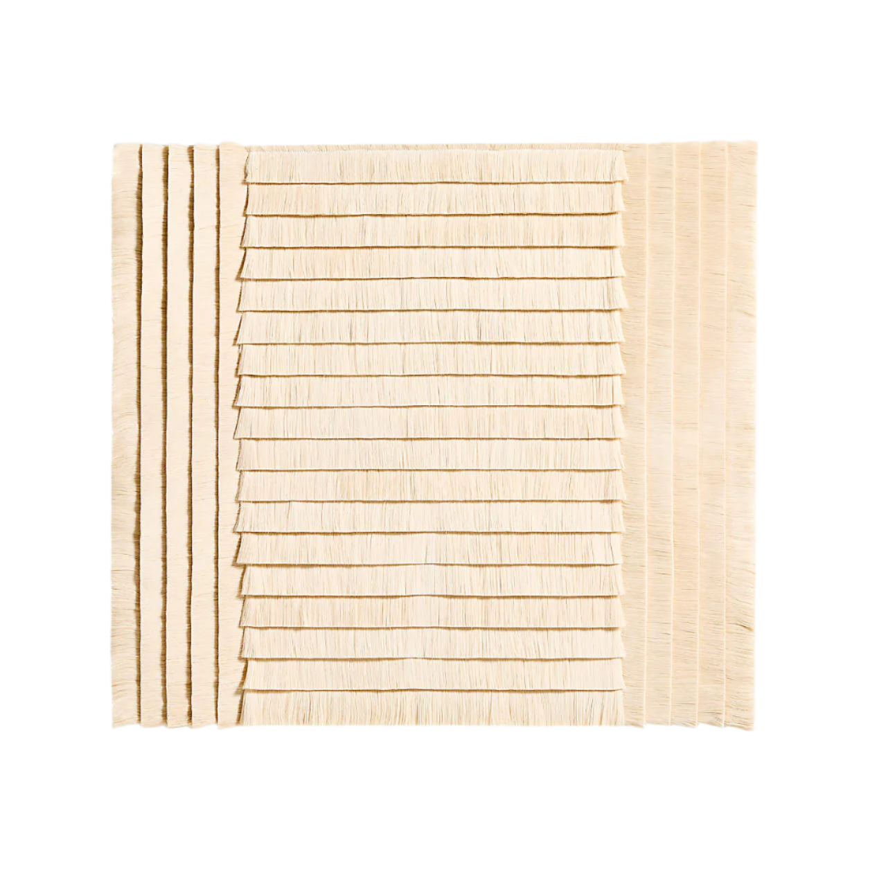 El Tapiz Arrozal es parte de la Colección “Recuperados”, una colección de piezas decorativas basadas en los principios de recuperar, ensamblar y transformar.