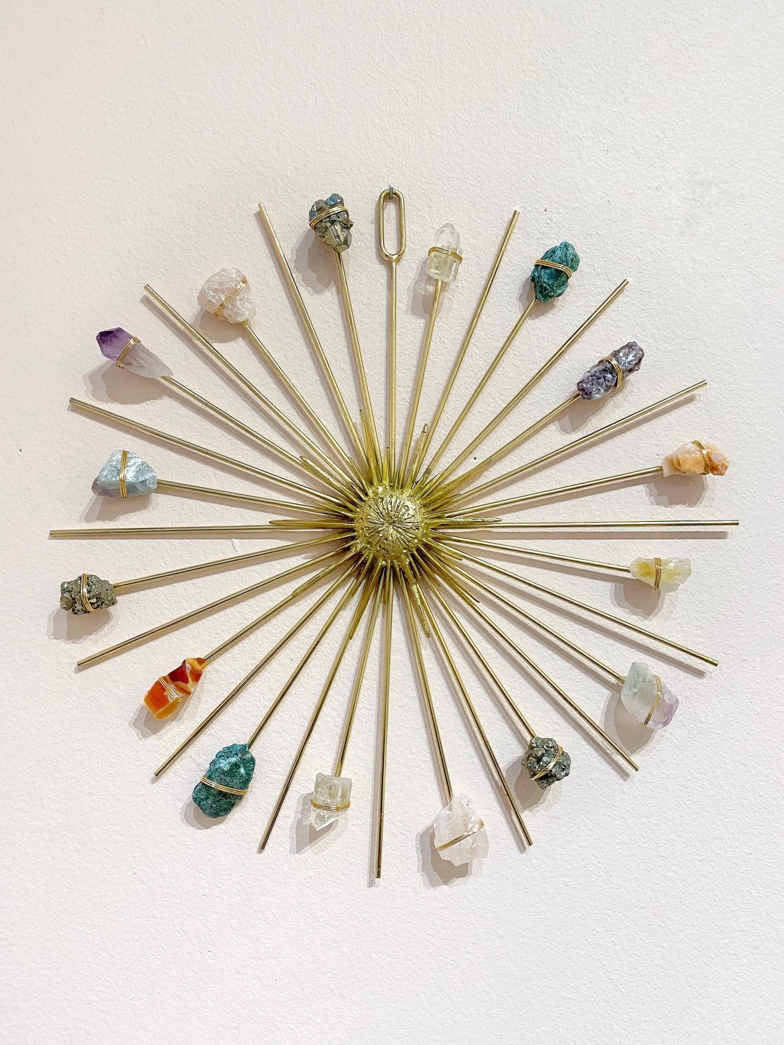 El prototipo original de metal se fabricó con cera y alambre de metal fundido a la perfección como base para envolver los cristales a mano. Es un trabajo hecho con amor en nuestro estudio de diseño.