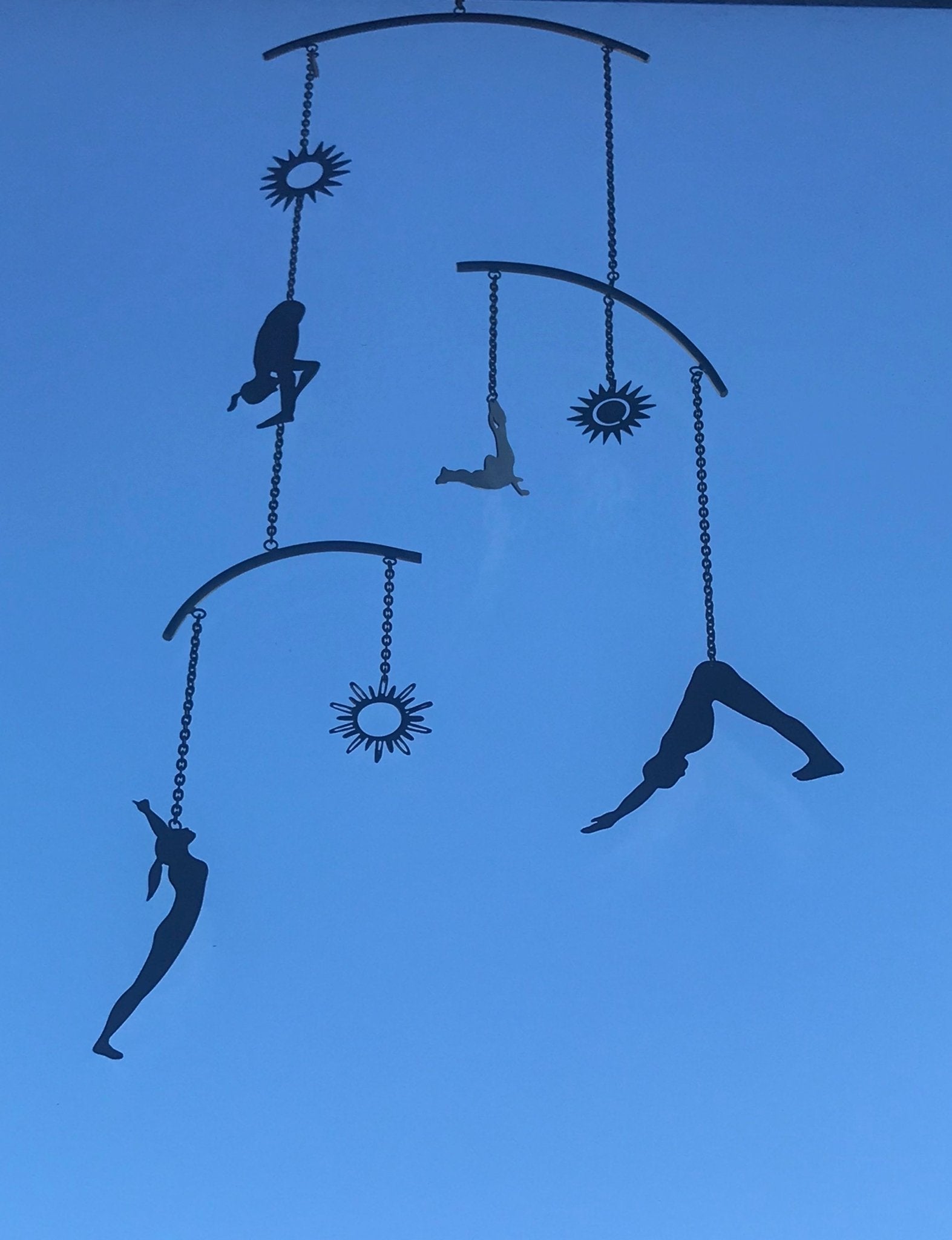 Presentamos nuestro colgante de pared Saludo al sol para yoga, una incorporación sorprendente para su espacio de práctica de yoga. Este exquisito móvil de pared en cascada sirve como un hermoso recordatorio para saludar al sol y abrazar la energía positiva de su práctica de yoga.