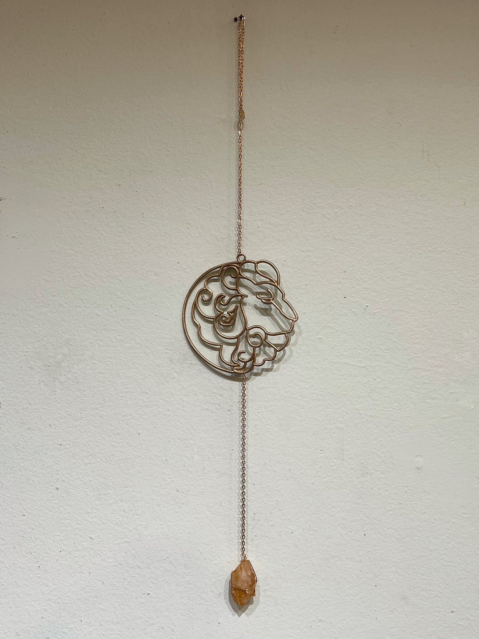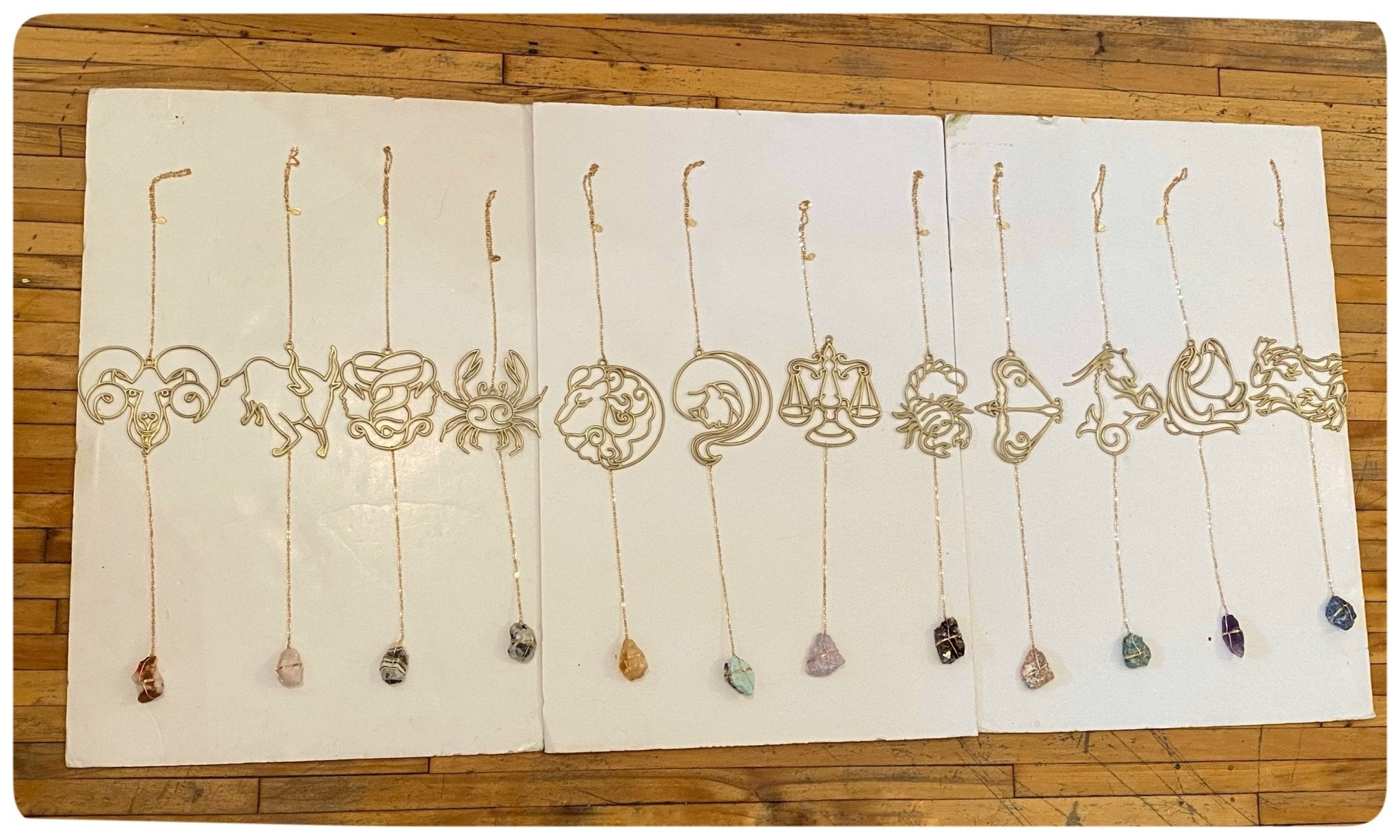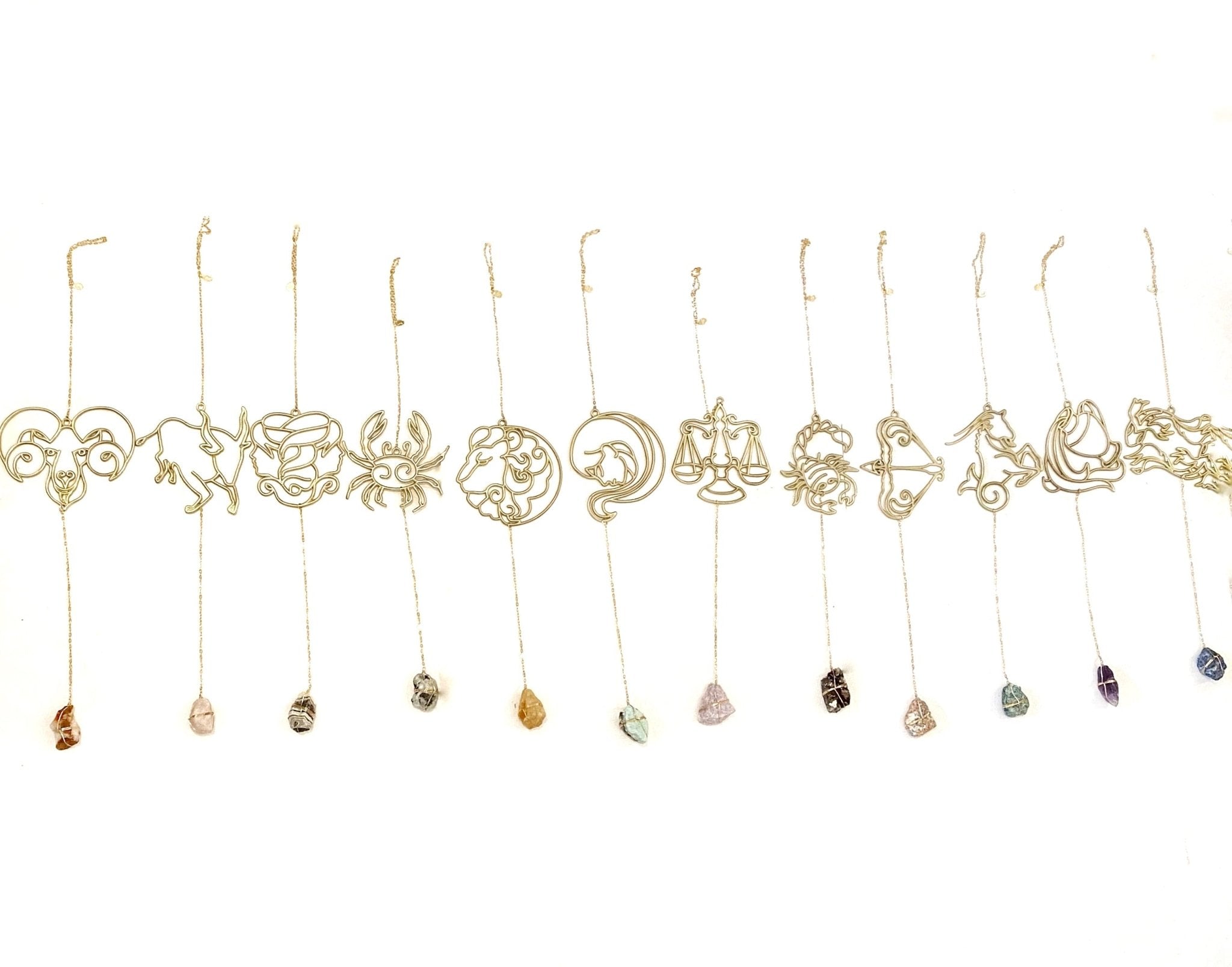 Nuestro equipo de talentosos artistas ilustró meticulosamente cada signo del zodíaco, capturando la esencia y la belleza de los símbolos astrológicos. Hecho con una combinación de latón cortado con láser, una cadena dorada brillante y cristales curativos de origen ético, este colgante de pared es una verdadera obra de arte.