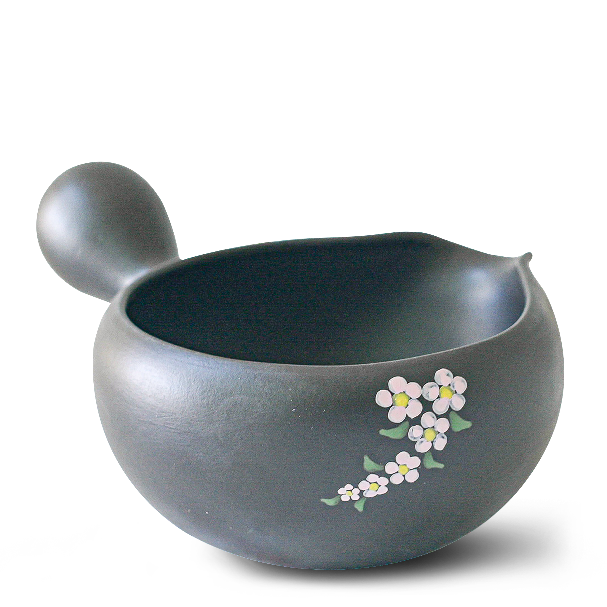 Black Flowers Ceramic Matcha Bowl with Spout, Bamboo Matcha Whisk & Whisk Holder Set