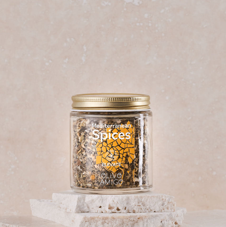 Elevate is our signature spice blend inspired by the sun-soaked flavors of the Mediterranean. Crafted with hand-picked, single-origin spices grown on family farms, this vibrant blend adds depth, brightness, and balance to any dish. Personally designed by Gloria, Elevate is the everyday blend she uses to bring warmth, flavor, and joy to her family’s meals.