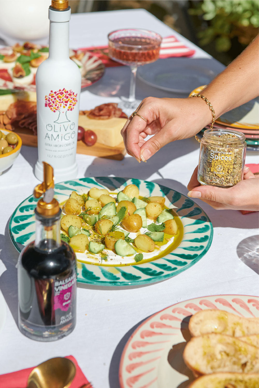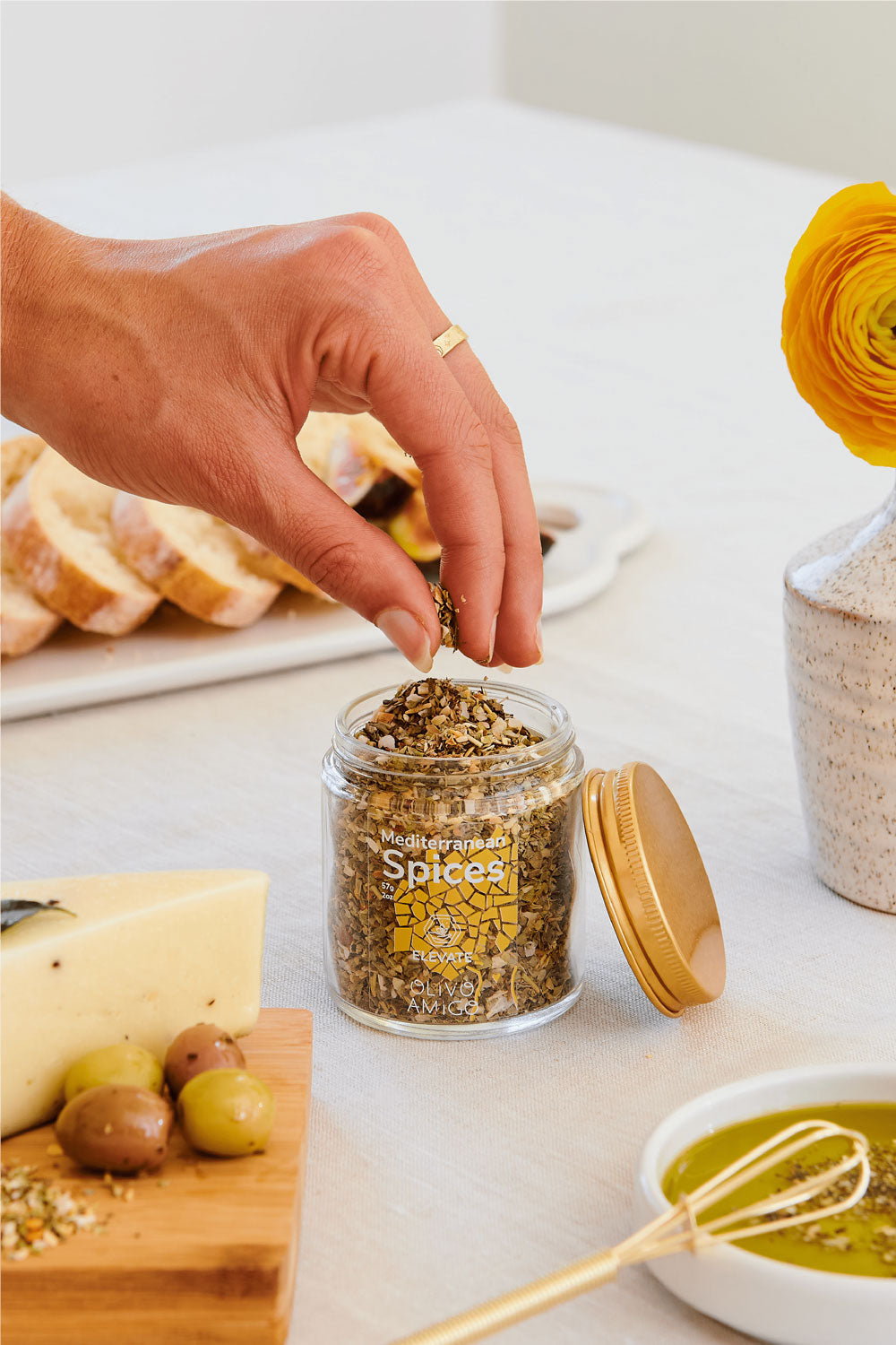 From pasta and fresh bread dipped in olive oil to salads, roasted meats, fish, potatoes, and beyond—just a pinch of Elevate brings your cooking to life with authentic Mediterranean character.