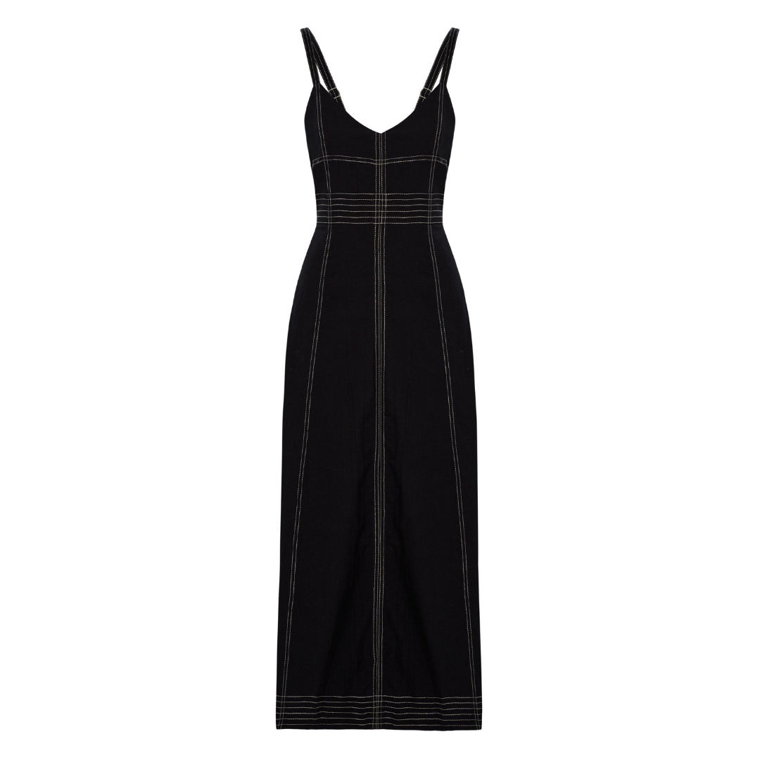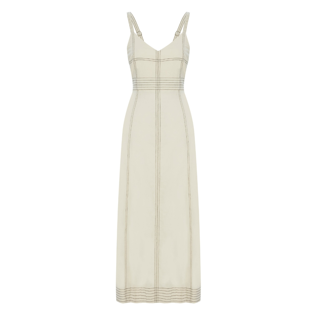 Designed to bring a statement to your summer, this maxi dress features a slim-fit style with a maxi hemline and V-shaped neckline for a clean, streamlined silhouette. Crafted from 100% Turkish cotton, the dress cascades along the body with stitch detail that accents movement on the fabric. Made for slipping on with ease, it’s a minimalist, elegant favorite for warm-weather rotation.