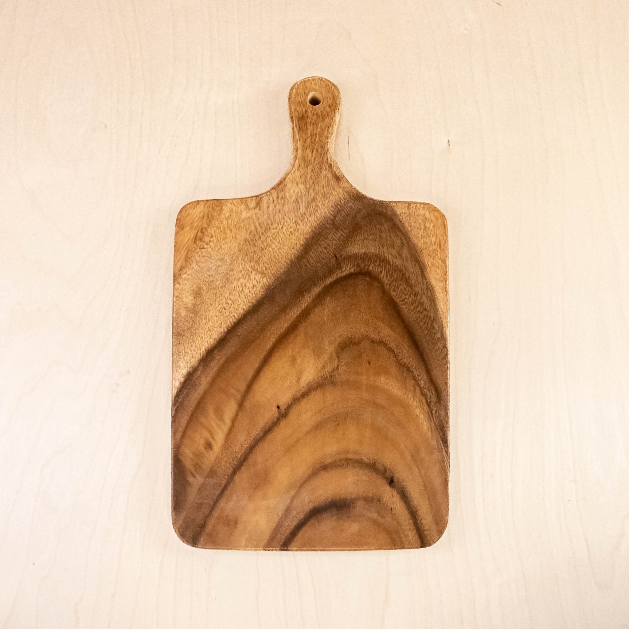 Each board is handmade by artisans in the Philippines using sustainably sourced acacia wood. Slight variations in size, shape, and color are to be expected due to the handcrafted nature of the product, making each one truly one-of-a-kind.