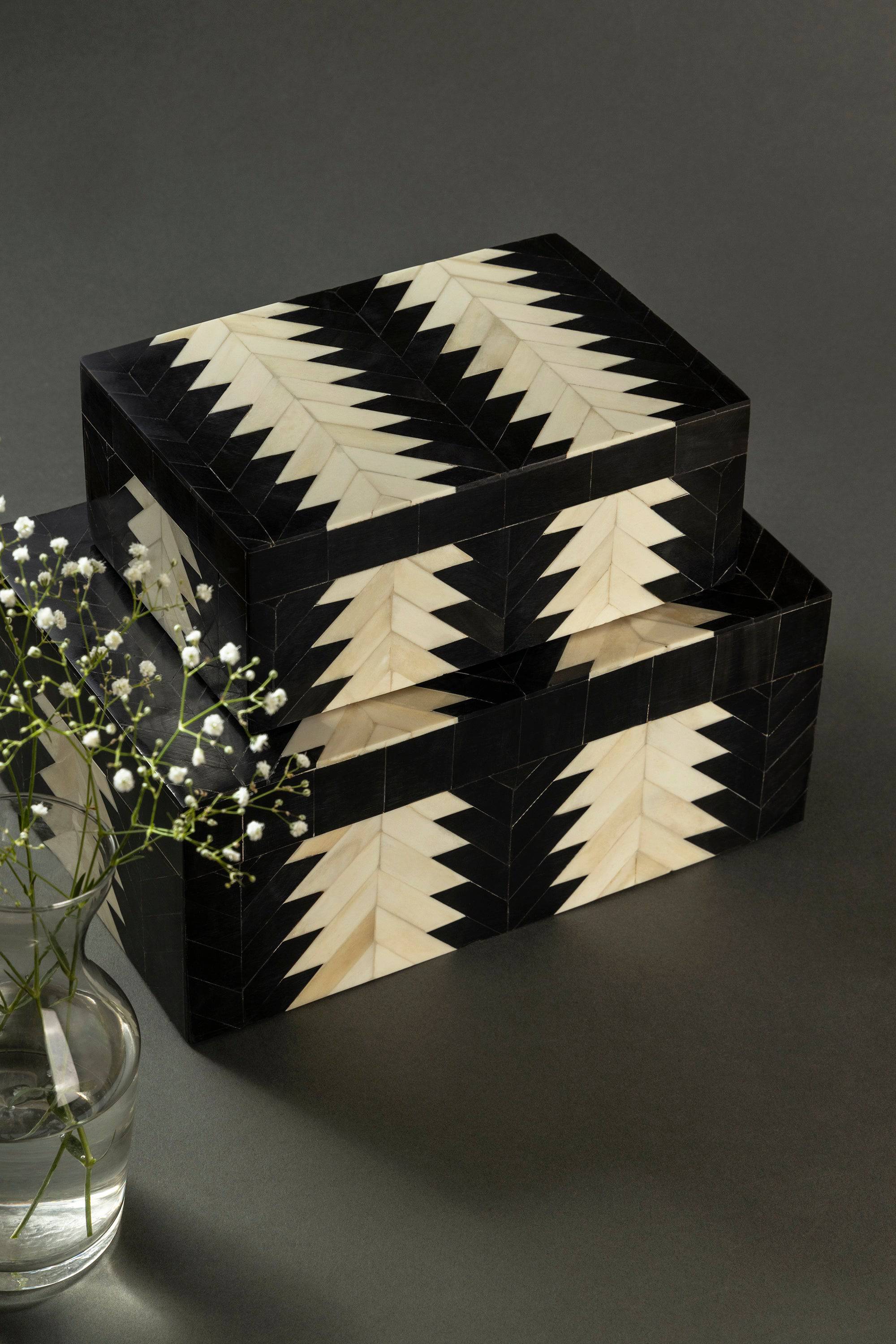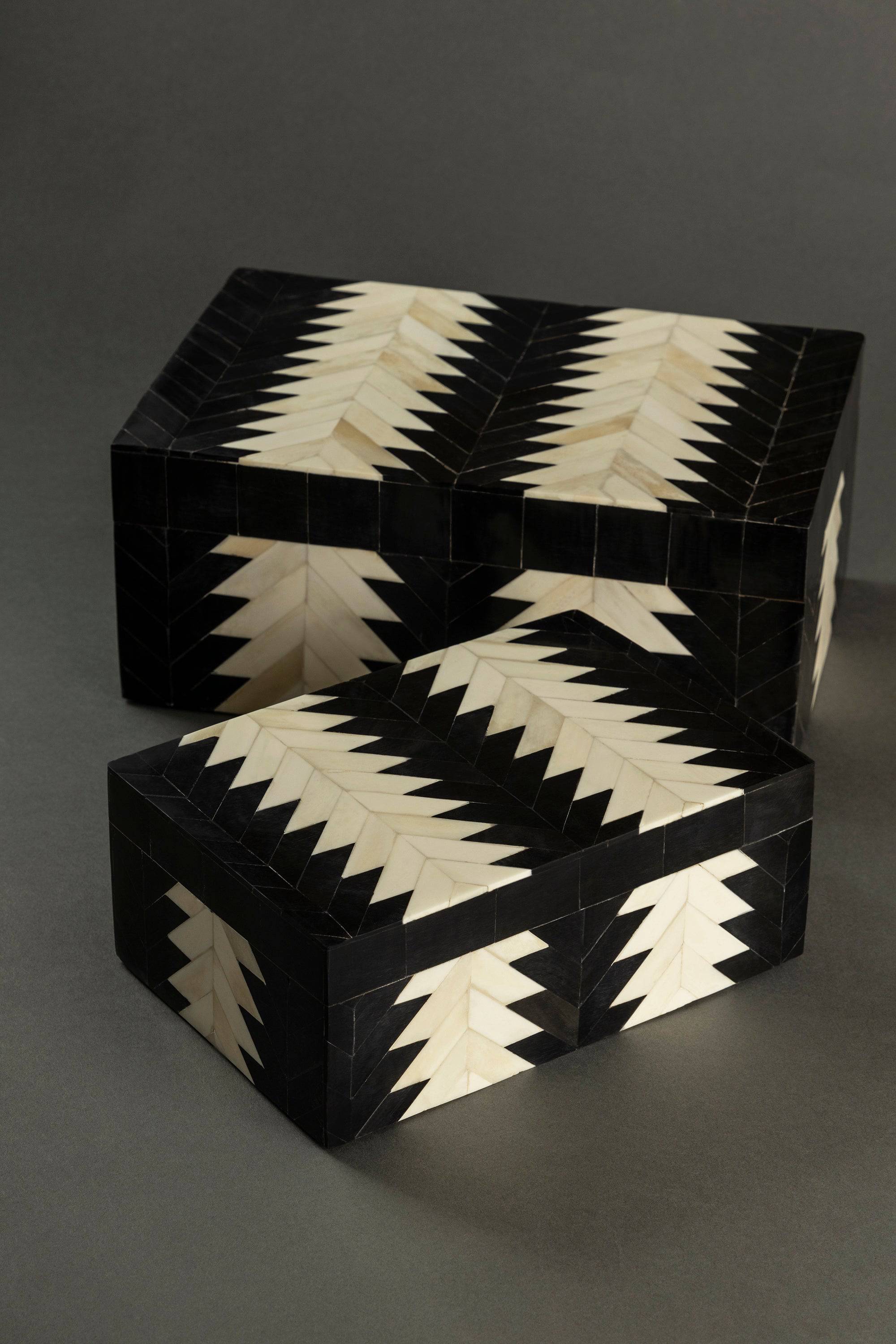 Este lujoso conjunto de cajas decorativas está hecho a mano con huesos y cuernos de animales y presenta un diseño y una artesanía intrincados exclusivos del estado de Rajastán en la India. Agregue un toque de elegancia exótica a su hogar u oficina con estas cajas decorativas hechas a mano.