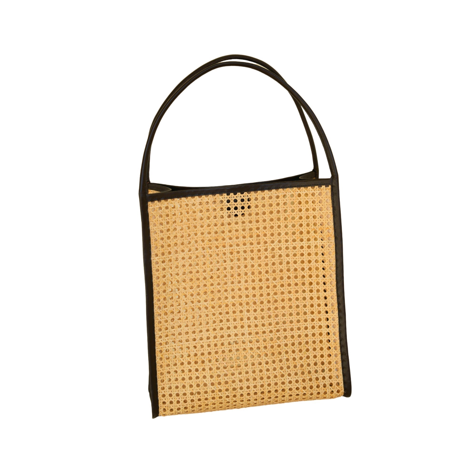 Viviana Oversized Cane and Leather Tote in Dark Brown