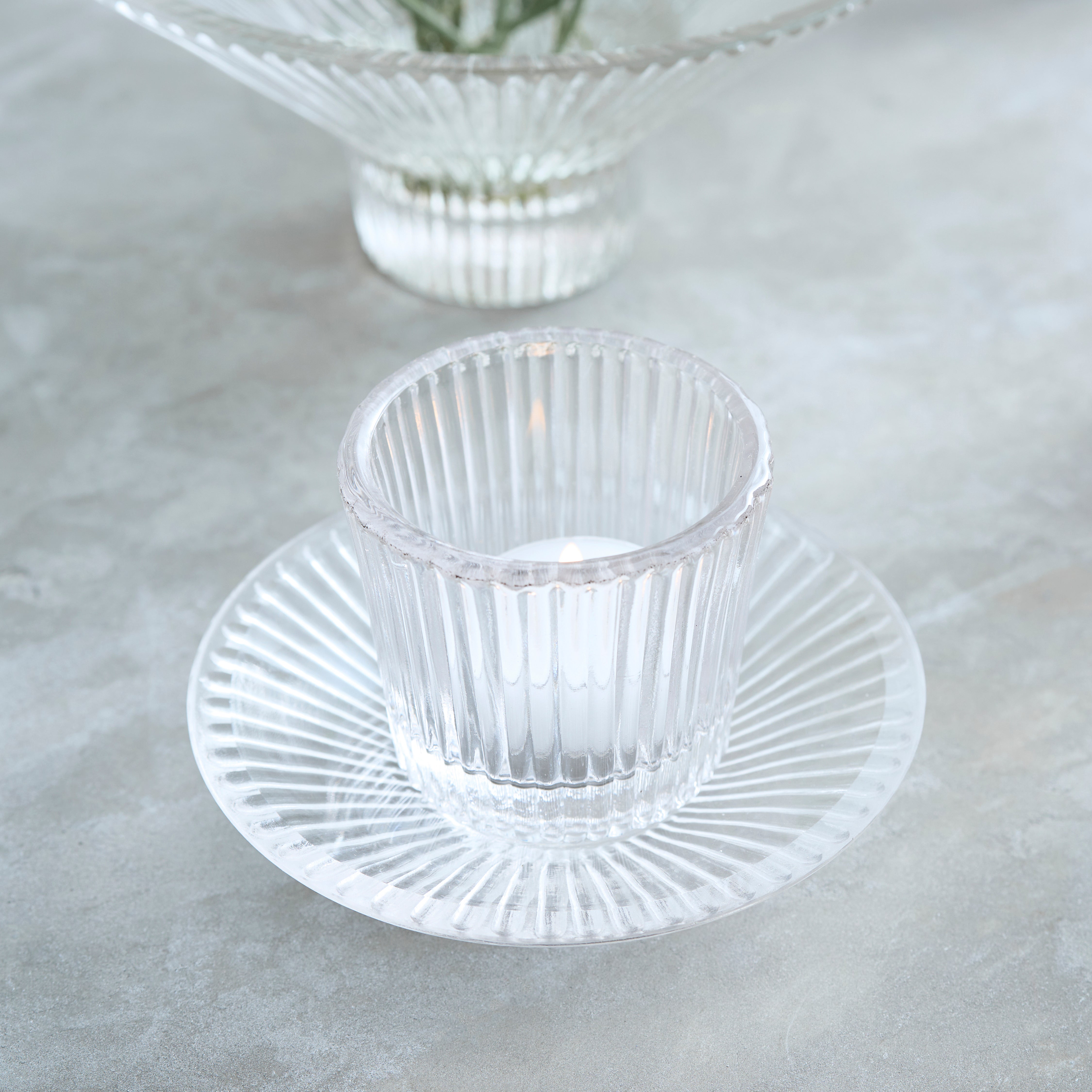 Ribbed Clear Glass Tealight / Votive Holders - Set of 4