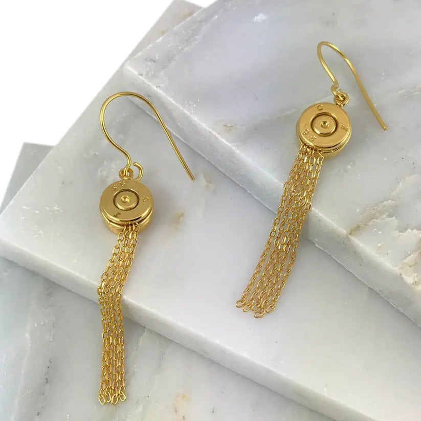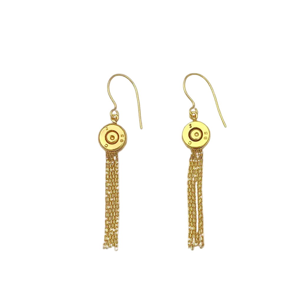- Material: Recycled brass bullet casing + Gold plated chains