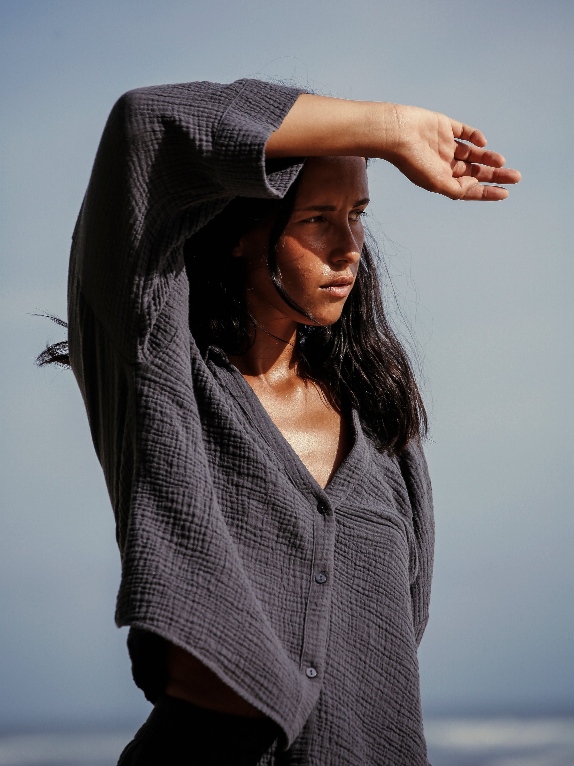 Designed with a relaxed, easy silhouette for comfortable movement and versatile layering—ideal for warm-weather styling.