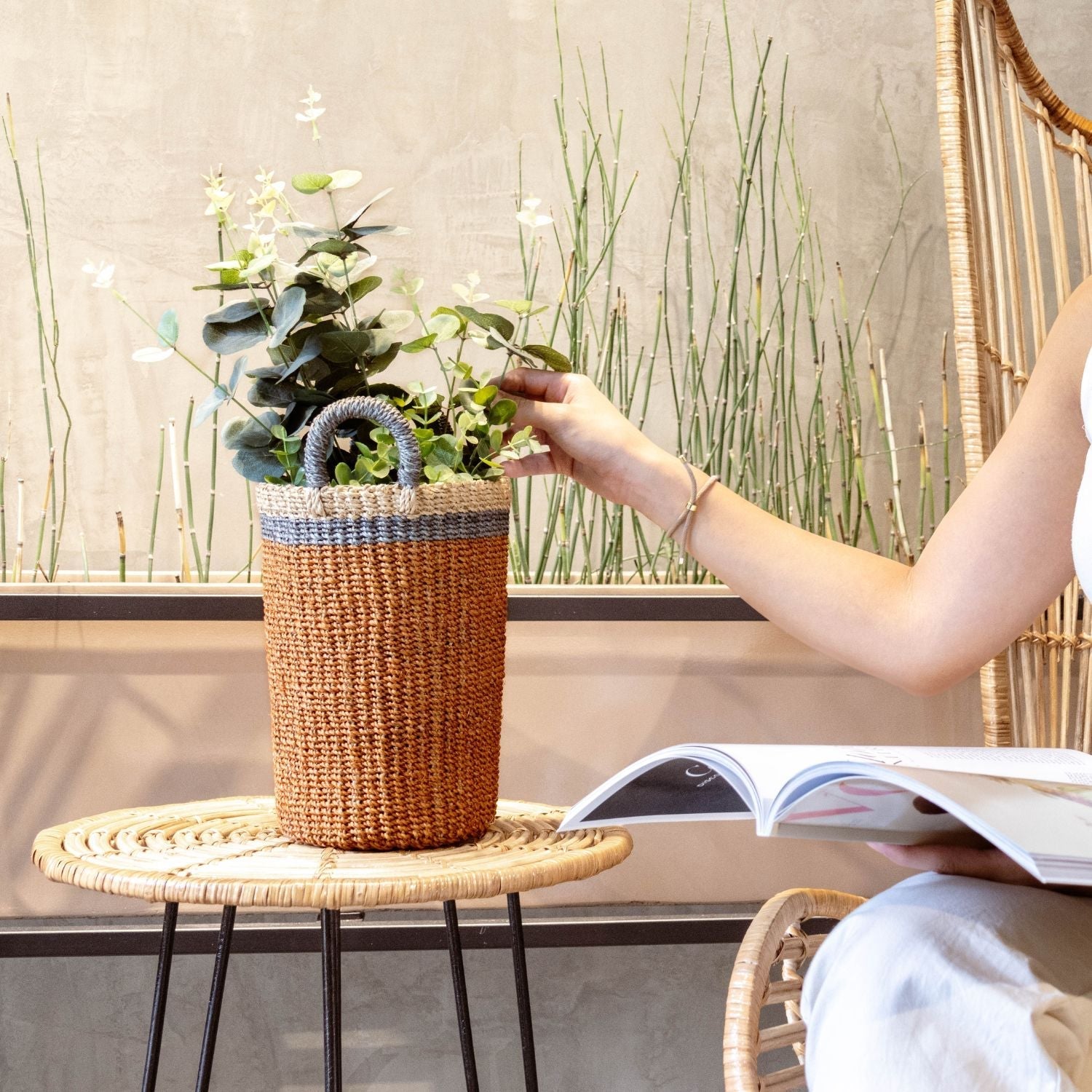 Designed for modern living, the sturdy construction, intricate weave, and timeless forms make these baskets durable décor accents you’ll reach for every day—from floor baskets with built-in handles for easy transport, to compact catch-alls and tall vase silhouettes that add sculptural interest. Every purchase helps support and empower artisan communities, honoring traditional techniques while embracing sustainable materials.