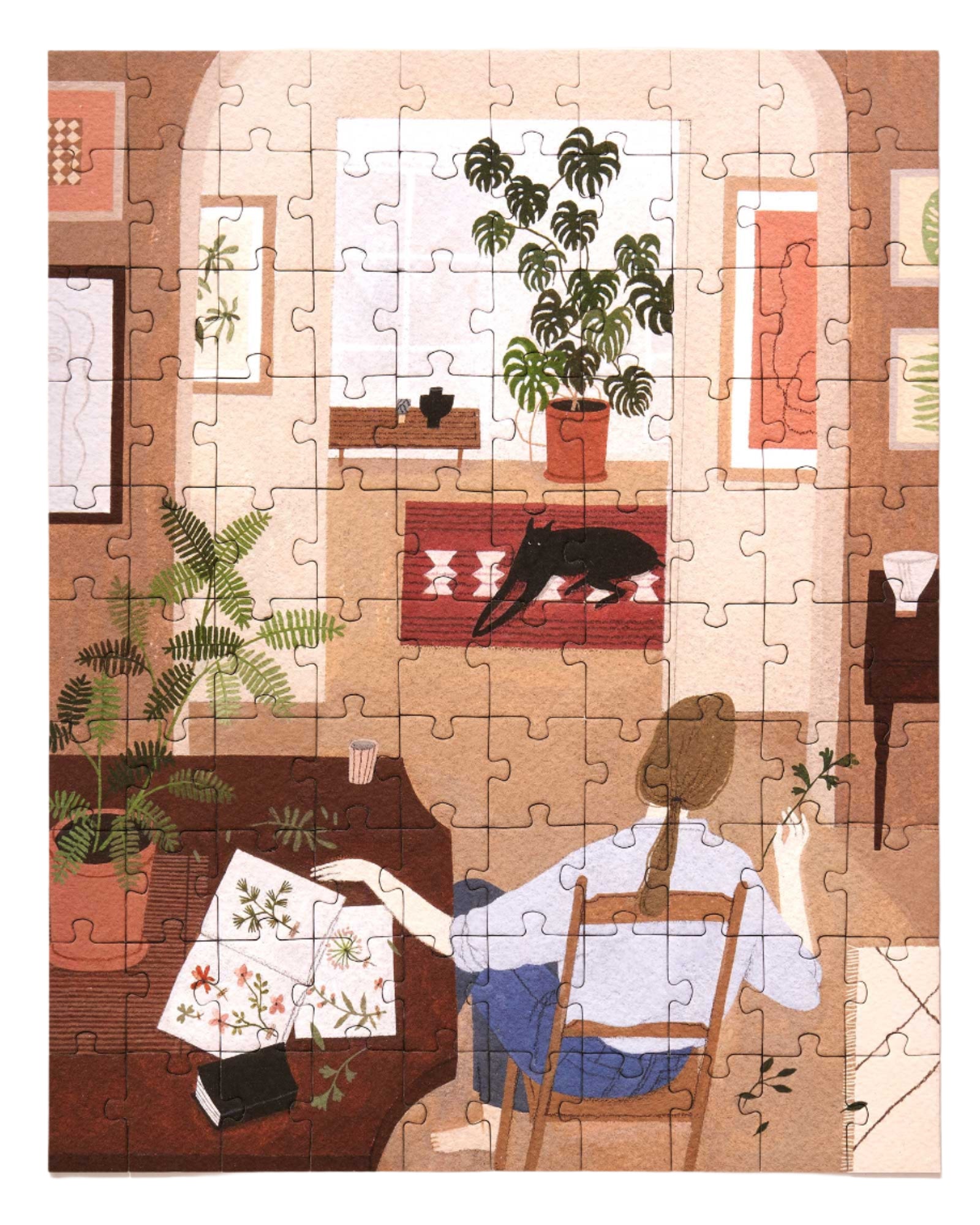 As her gentle dog companion sits patiently in the background, our heroine presses flowers at her dining table. A scene that is sure to bring a moment of calm to your day, you’ll delight in exploring the tiny details that come to life in Herbarium.