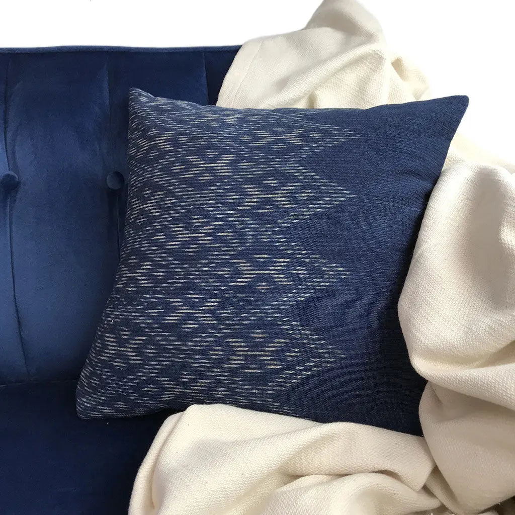 Each cover showcases traditional weaving and resist-dye techniques passed down through generations, resulting in distinctive patterns that bring artisanal texture and character to any sofa, bed, or reading nook. The cotton is planted, picked, ginned, and spun by hand, then woven on traditional wood and bamboo looms—an ethical, small-batch process that supports rural livelihoods and helps preserve vanishing art forms.