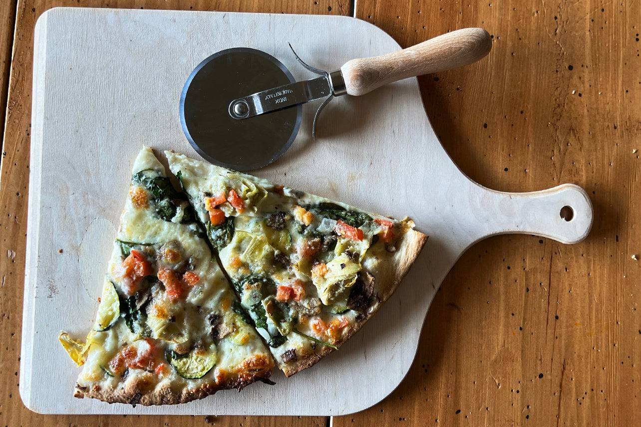 Sturdy, durable, and lightweight, the beechwood peel is known for being the Italian chef's choice for moving and serving pizza as the wooden surface is porous and smooth, so it absorbs moisture from the dough and prevents it from sticking. This traditional, shovel-like tool is used by Italian bakers and chefs to slide beneath loaves of bread, pizzas, pastries, and other baked goods into and out of the oven without any spilling or burning (of your fingers OR the pizza).