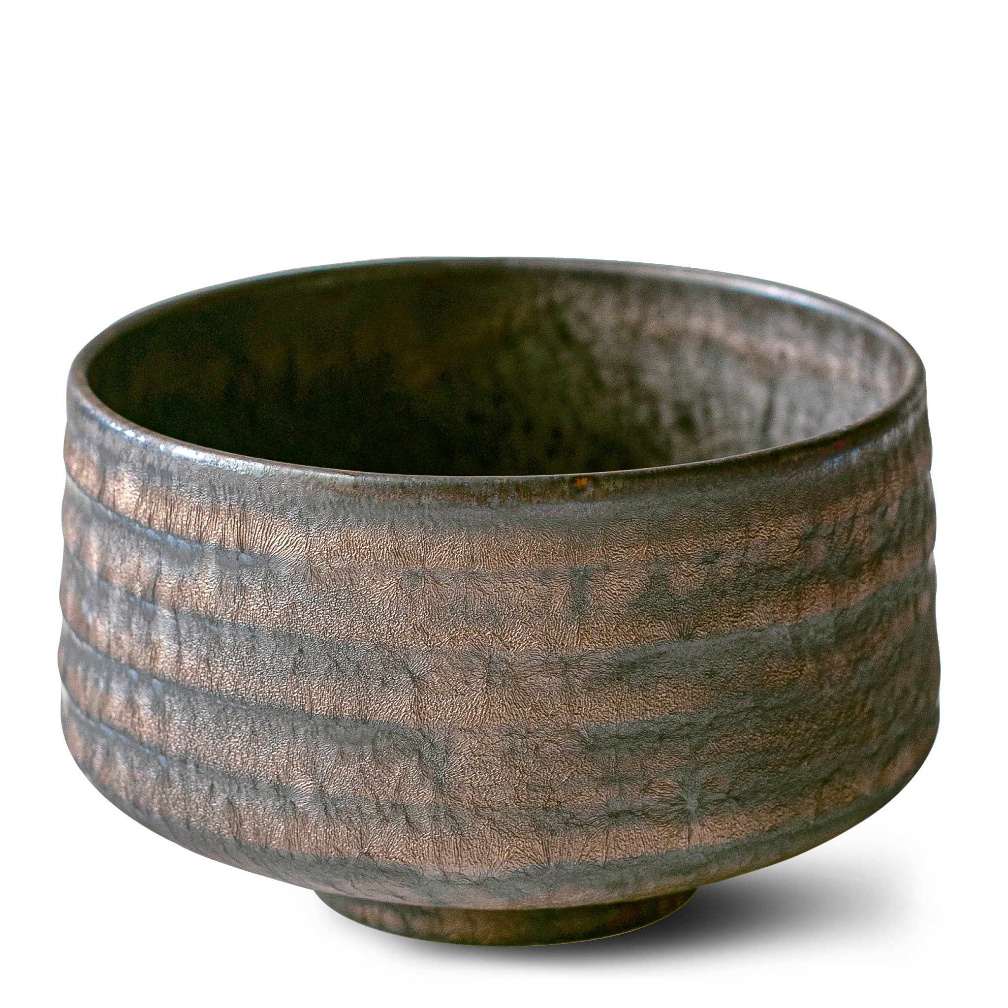 Kaneni Gold Crystal Ceramic Matcha Bowl, Bamboo Matcha Whisk & Whisk Holder Set