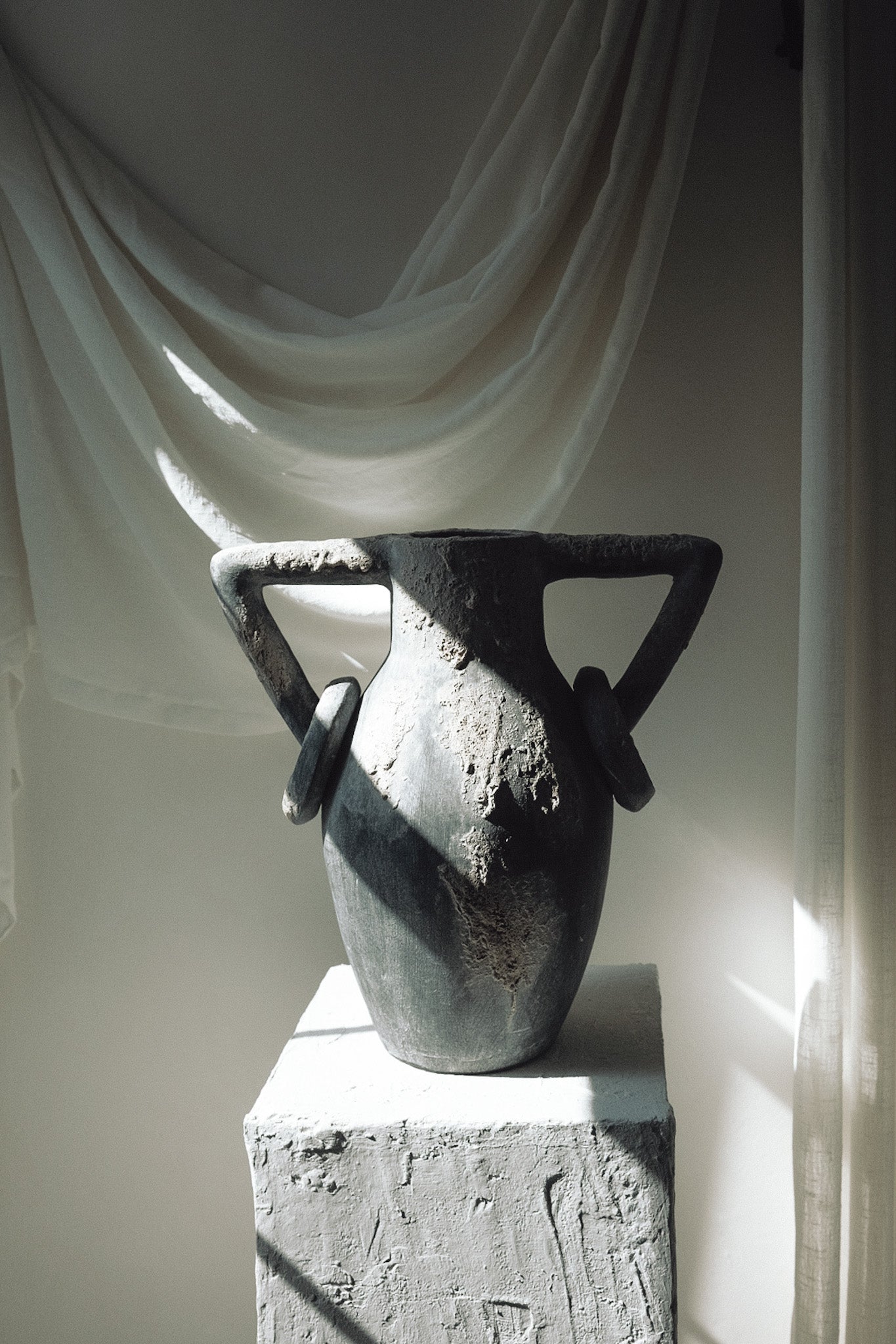 Introducing the Laut Vessel from Twenty Third by Deanne—a timeless piece that blends natural beauty with artisan craftsmanship. Handcrafted in Indonesia, this vessel’s distinctive bluish-gray hue and lava-like texture mimic the rugged allure of volcanic stone, making each one truly unique. Its sculpted form, featuring gracefully arched handles and vintage-inspired details, captures the essence of heritage techniques passed down through generations.
